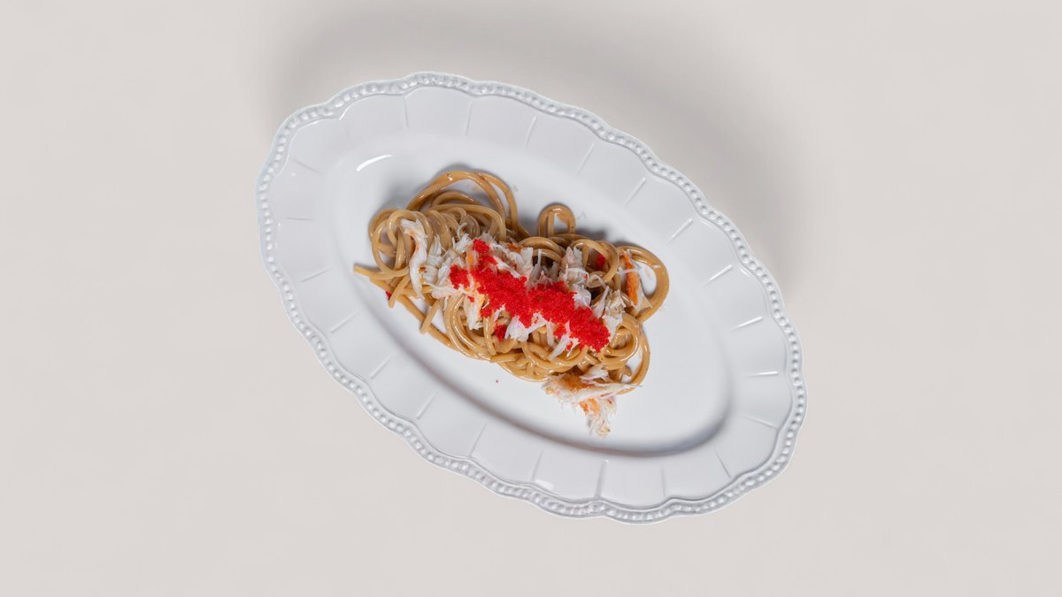 паста, перец чили, лук шалот, чеснок, вино, краб мясо, лук сибулет, соус пепер