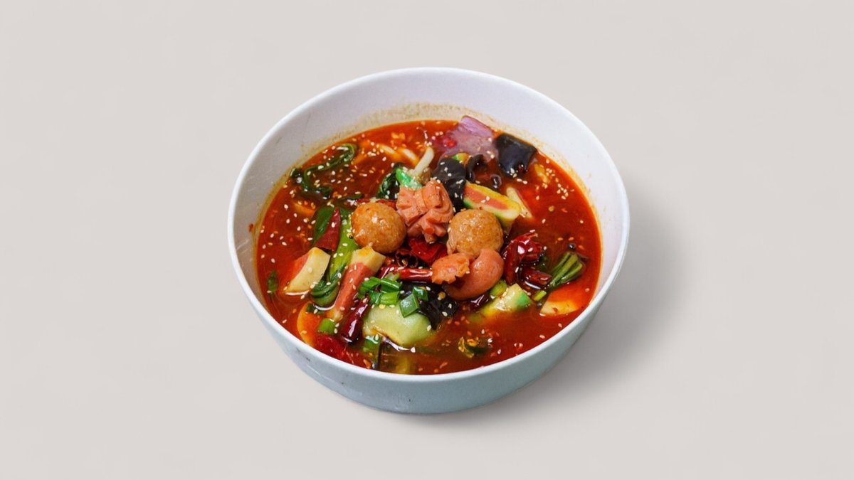 Фирменный острый суп для компаний куриные и рыбные колбаски, чаумифын ,древесные грибы , полугорький перец , зелень