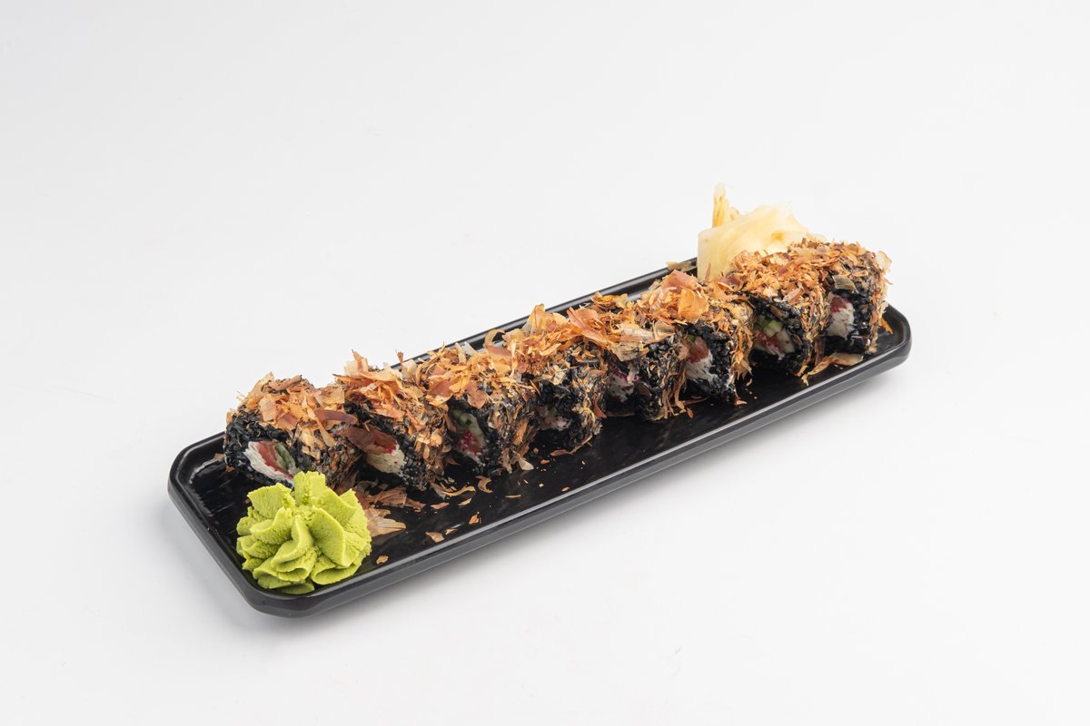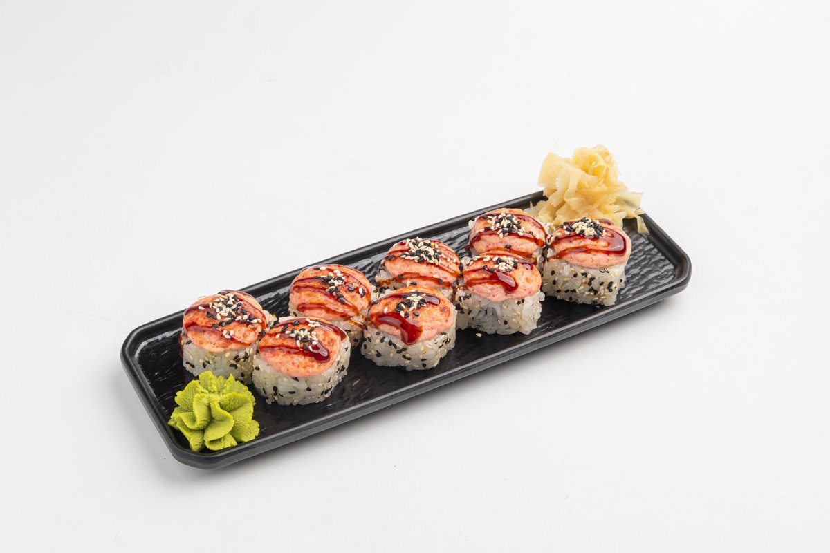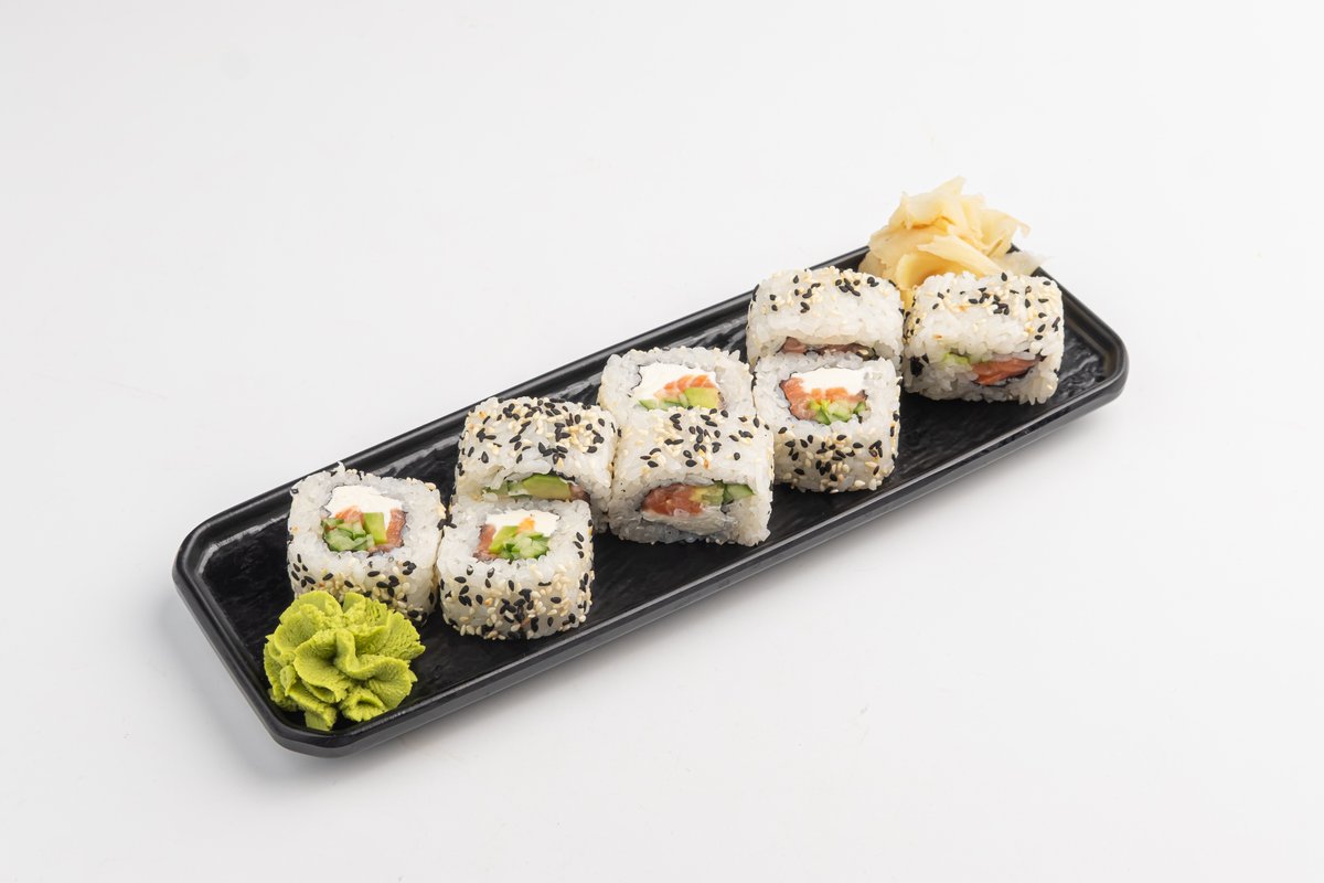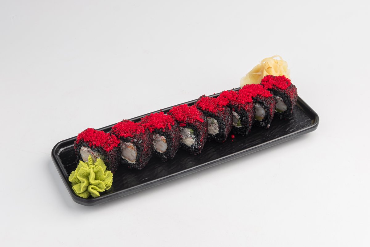 рис, нори, креметта, лосось, авокадо, креветки, тобико красный