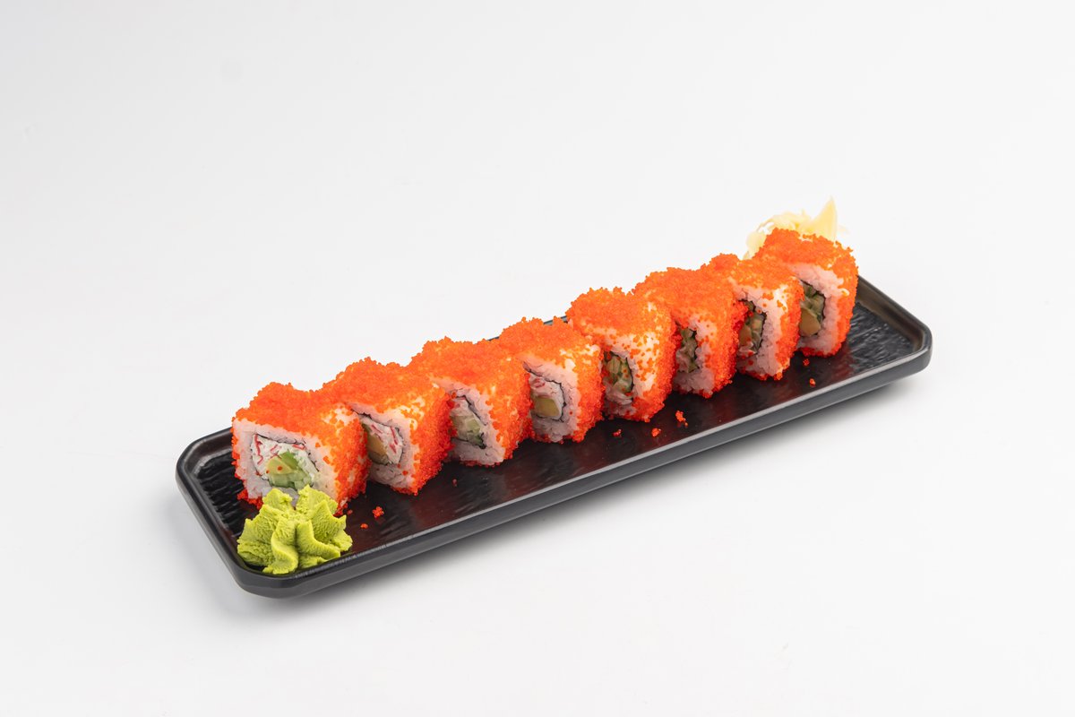 рис, нори, краб, авокадо, огурцы, тобико, креметта