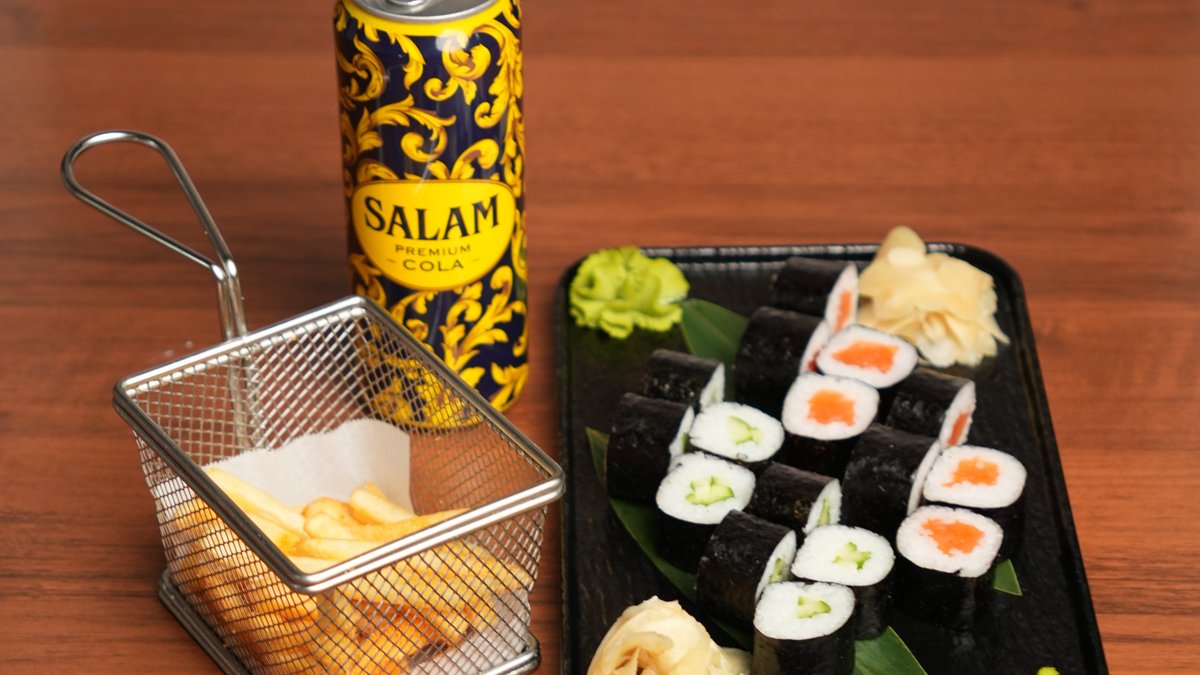 пицца с салями, фри 2,филадельфия, темпура, сяке маки, пепси 1 л