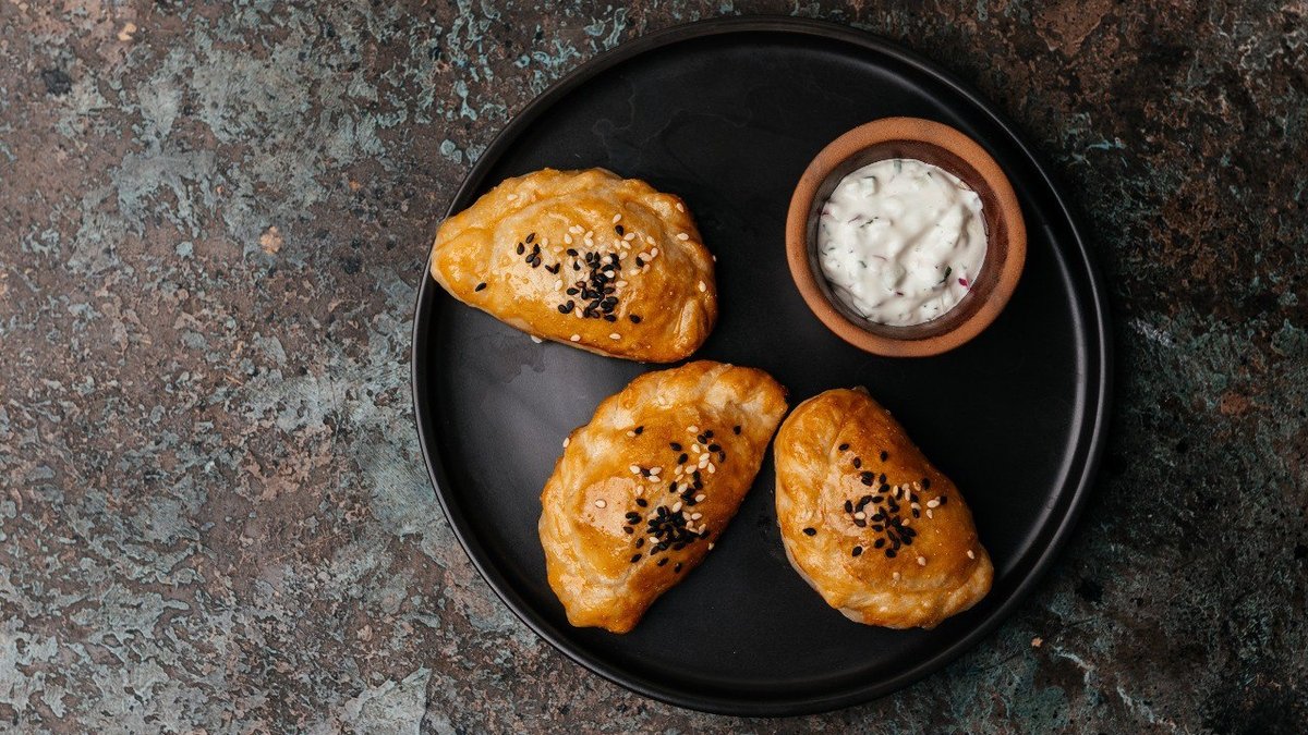мини чебуреки с мясом говядины, подается с пряным соусом – 4шт