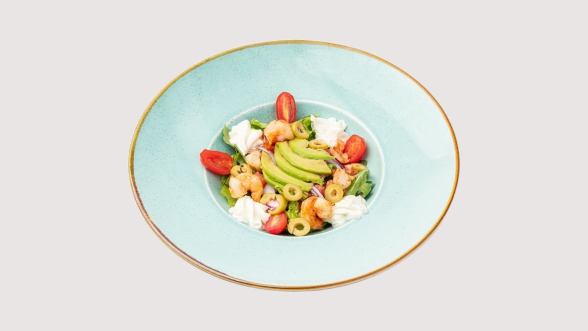 Сочный салат из свежих овощей с нежными тигровыми креветками. Подаётся с цитрусово-сливочной заправкой и миксом зелени. Элегантный вкус с морским акцентом