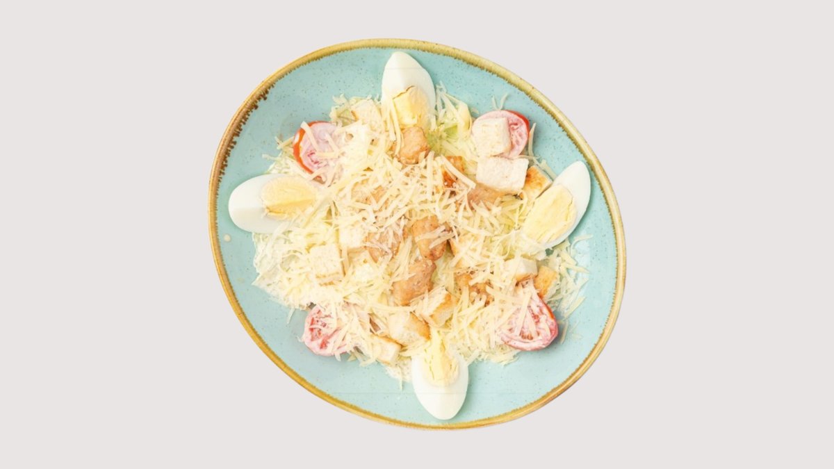 Фирменный салат с сочным куриным филе, хрустящими листьями салата айсберг в классическом соусе цезарь с легким чесночным послевкусием. Сбалансированное и сытное блюдо