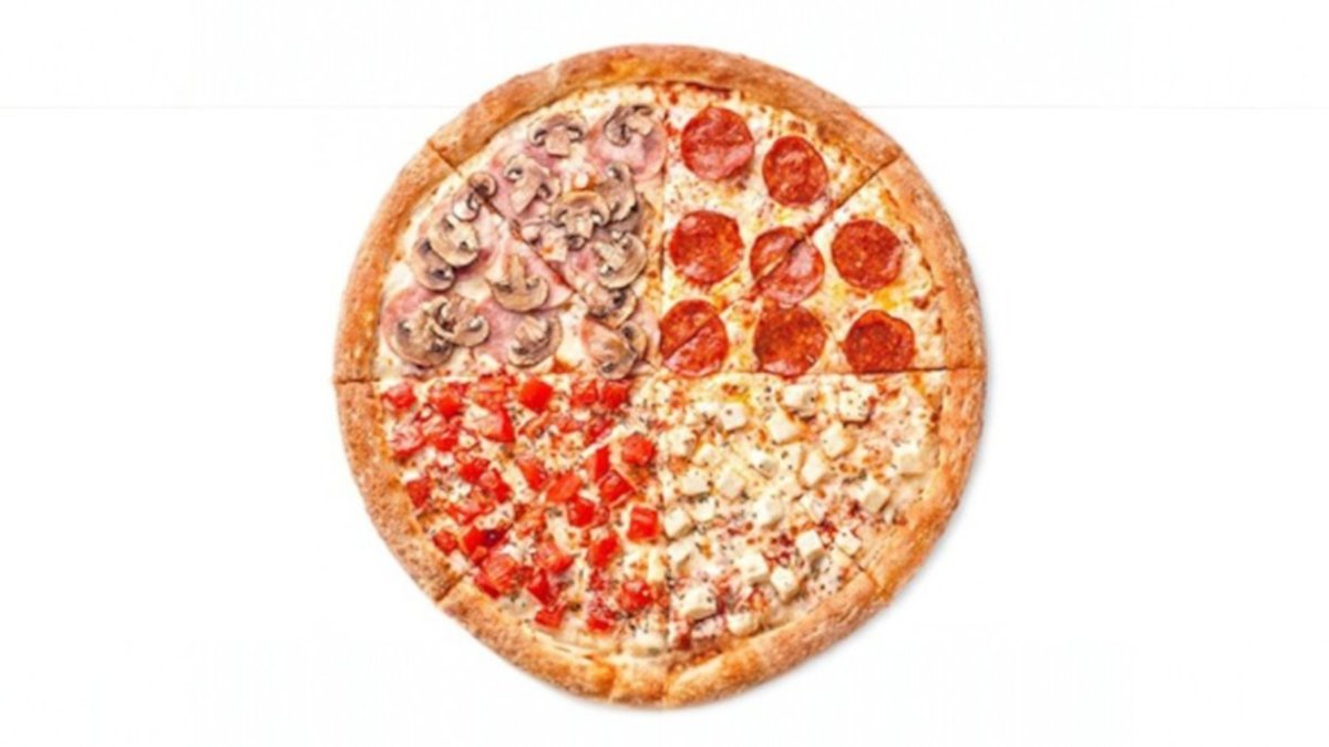 Классическая пицца, разделённая на четыре секции — с ветчиной, грибами, оливками и артишоками. Каждая четверть раскрывает свой характер, создавая гармонию вкусов в одном блюде 30 см