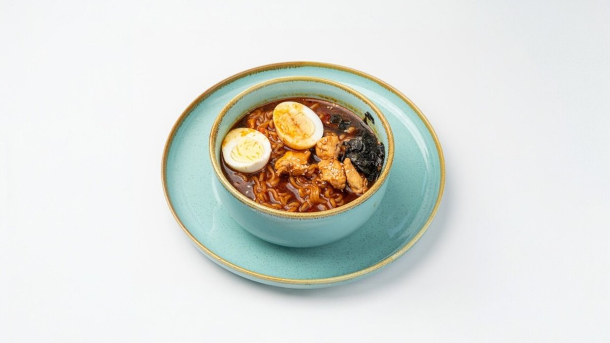 "Настоящий мясной удар!" Насыщенный куриный бульон, куринная мясо с пряностями, лапша ручной работы — этот рамен разбудит в тебе дикого самурая. Сытно, глубоко, по-настоящему.