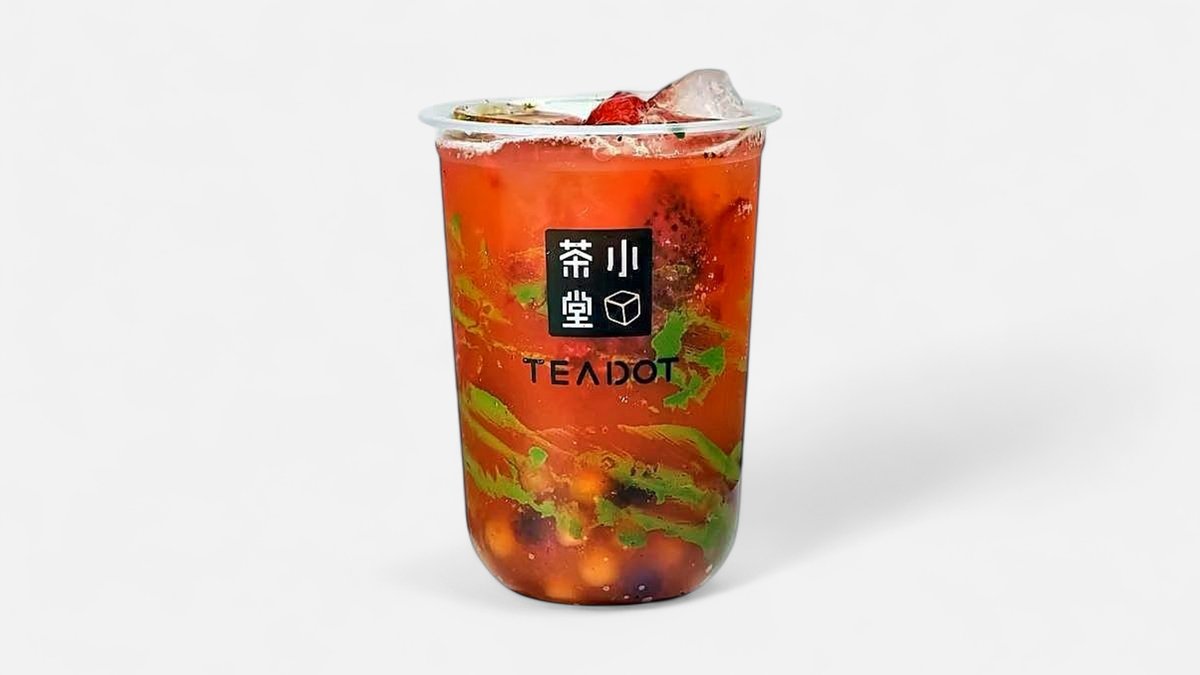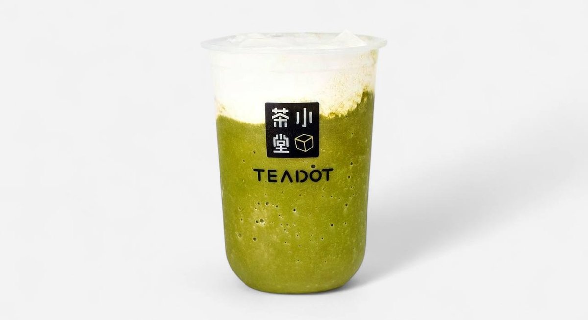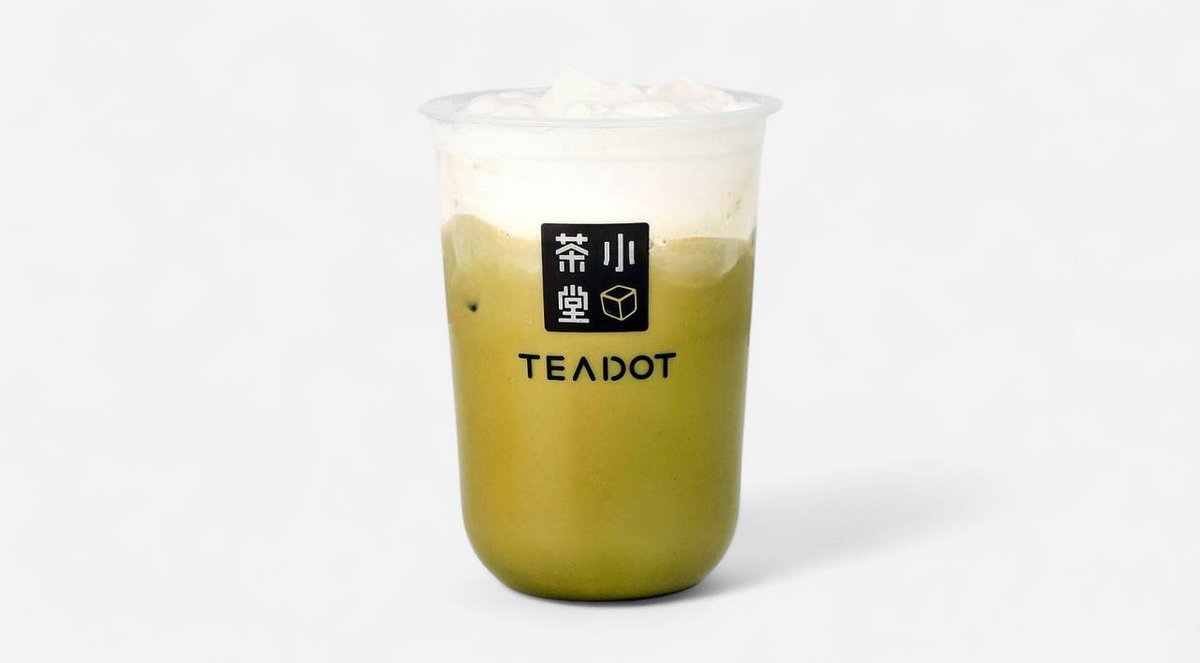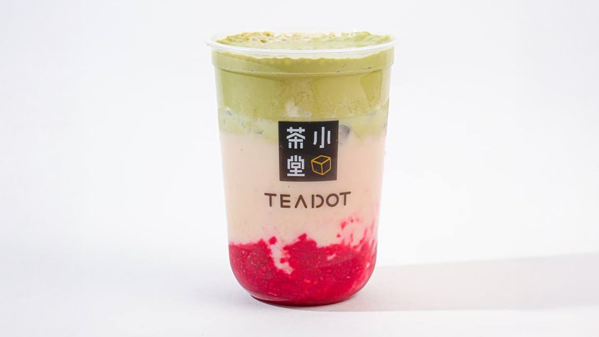 Молочный персиковый чай с малиной бананом и молочной шапкой матча