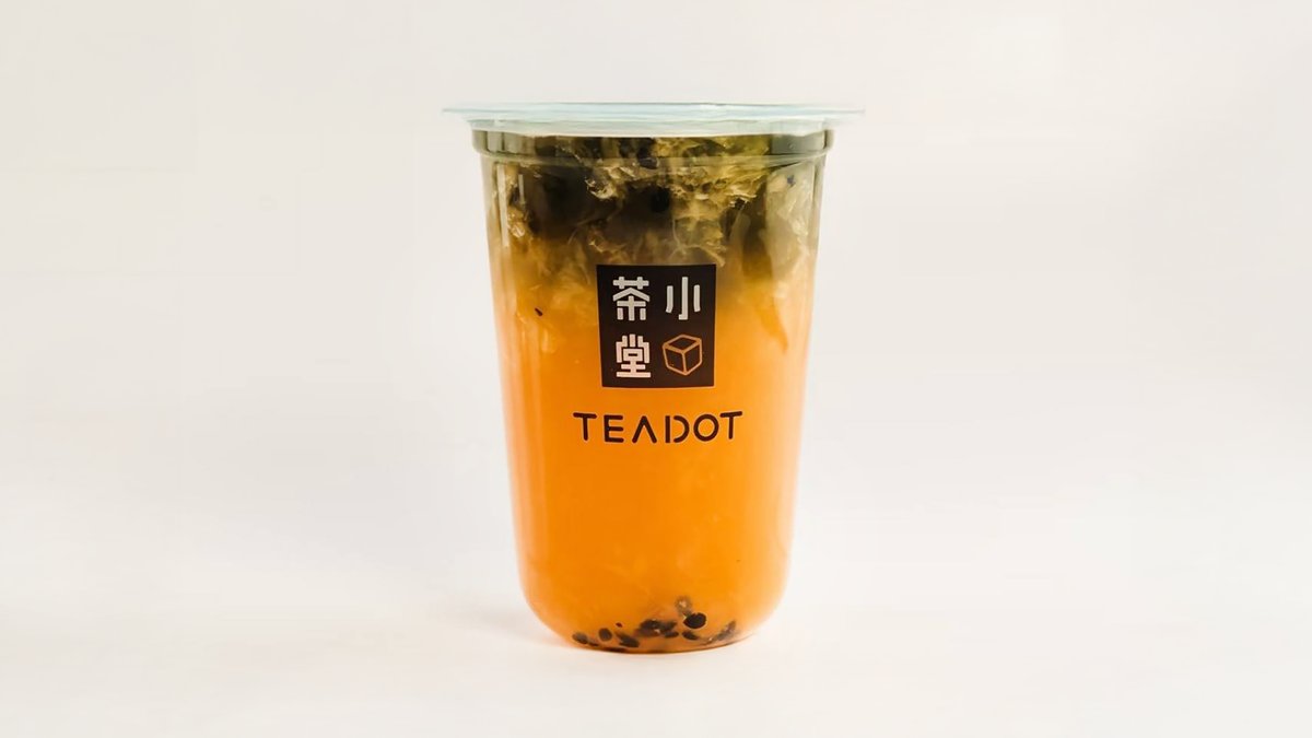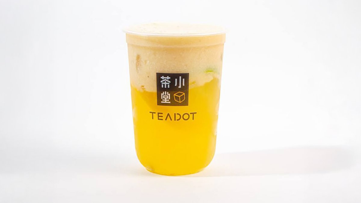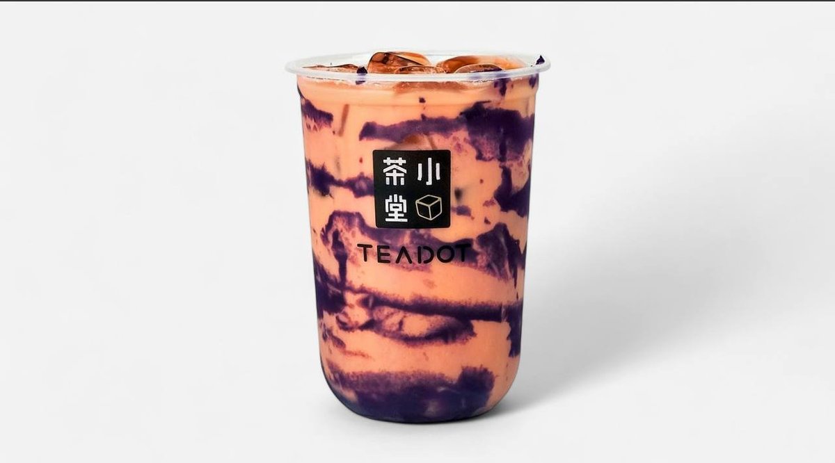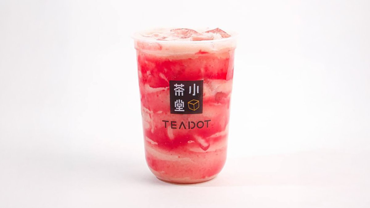 Молочный персиковый чай с малиной бананом и молочной шапкой матча