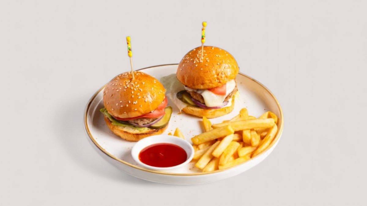 булочка, куриная сочная котлета, соленые огурцы, салат айсберг, помидор, красный репчатый лук. Подается с картофелем фри и кетчупом.