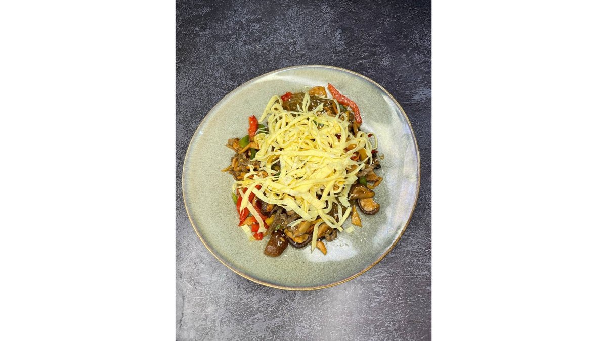 Куриная грудка, помидор, яйцо, маринованные шампиньоны, майонез, сыр
