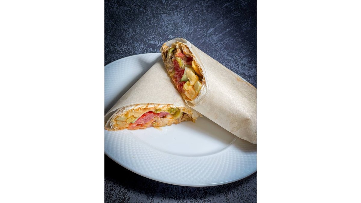 Состав: Лаваш, шашлык BBQ, окорочка, сыр моцарелла, картофель фри, сол.огурцы, помидоры, соус