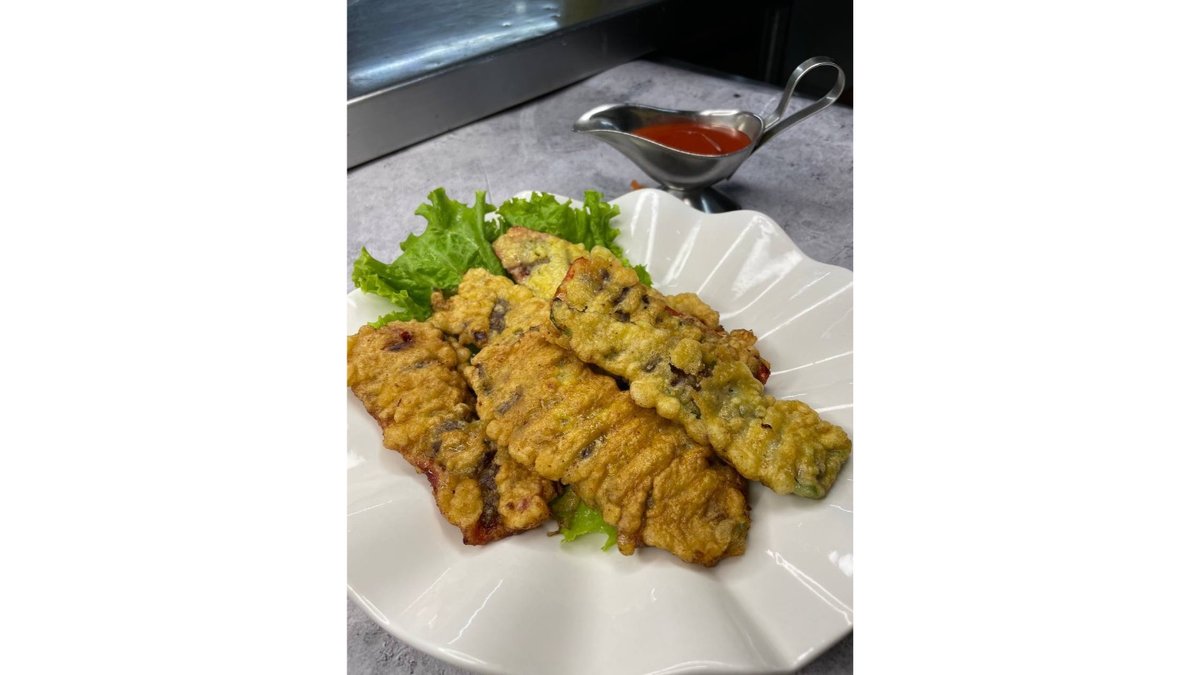 Состав: Суши рис, нори, кляр, краб, креветки, огурцы, ореховый соус