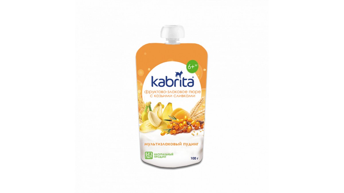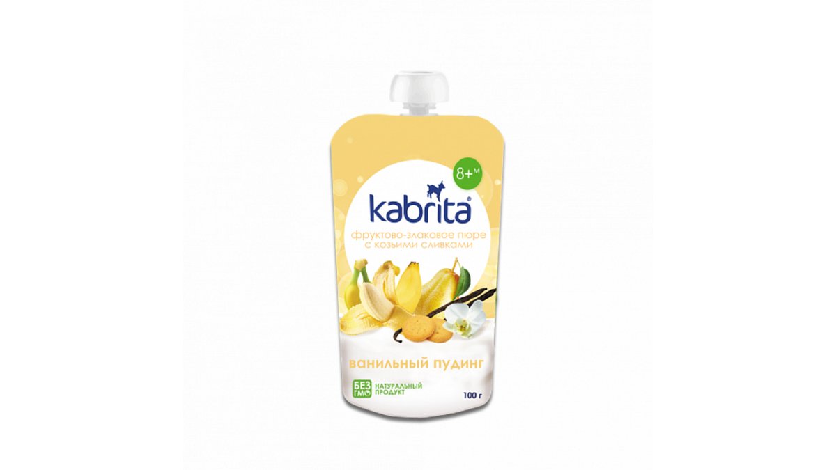 Kabrita® фруктово-злаковое пюре с козьими сливками «Ванильный пудинг» для детей с 8 мес