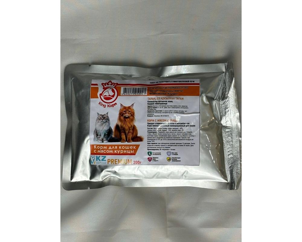 Влажный корм для кошек из курицы с овсяной кашей, 200гр