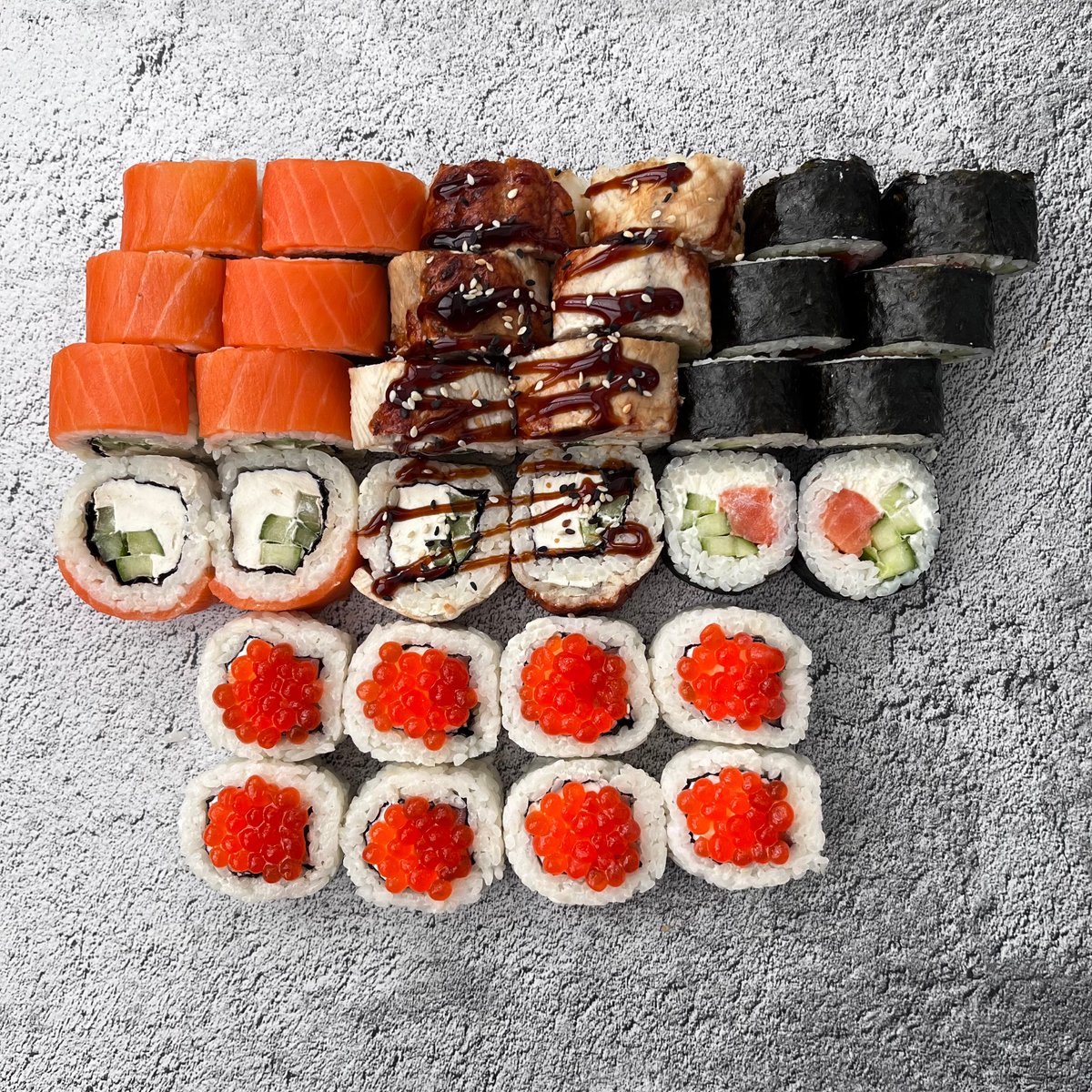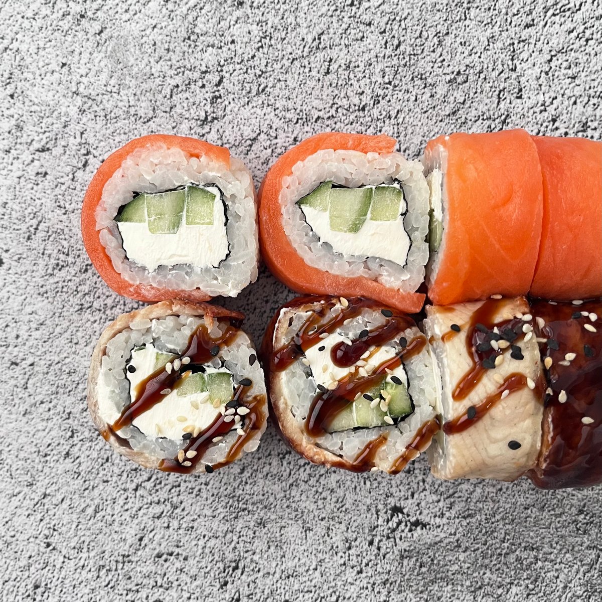 Филадельфия лайт 8 шт, унаги лайт 8 шт, гейша 8 шт, снежный 8 шт