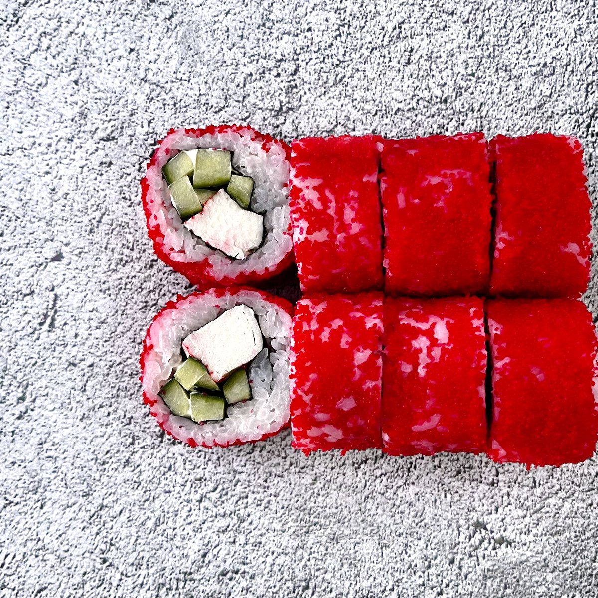 Рис, нори, снежный краб, майонез, огурец, масаго