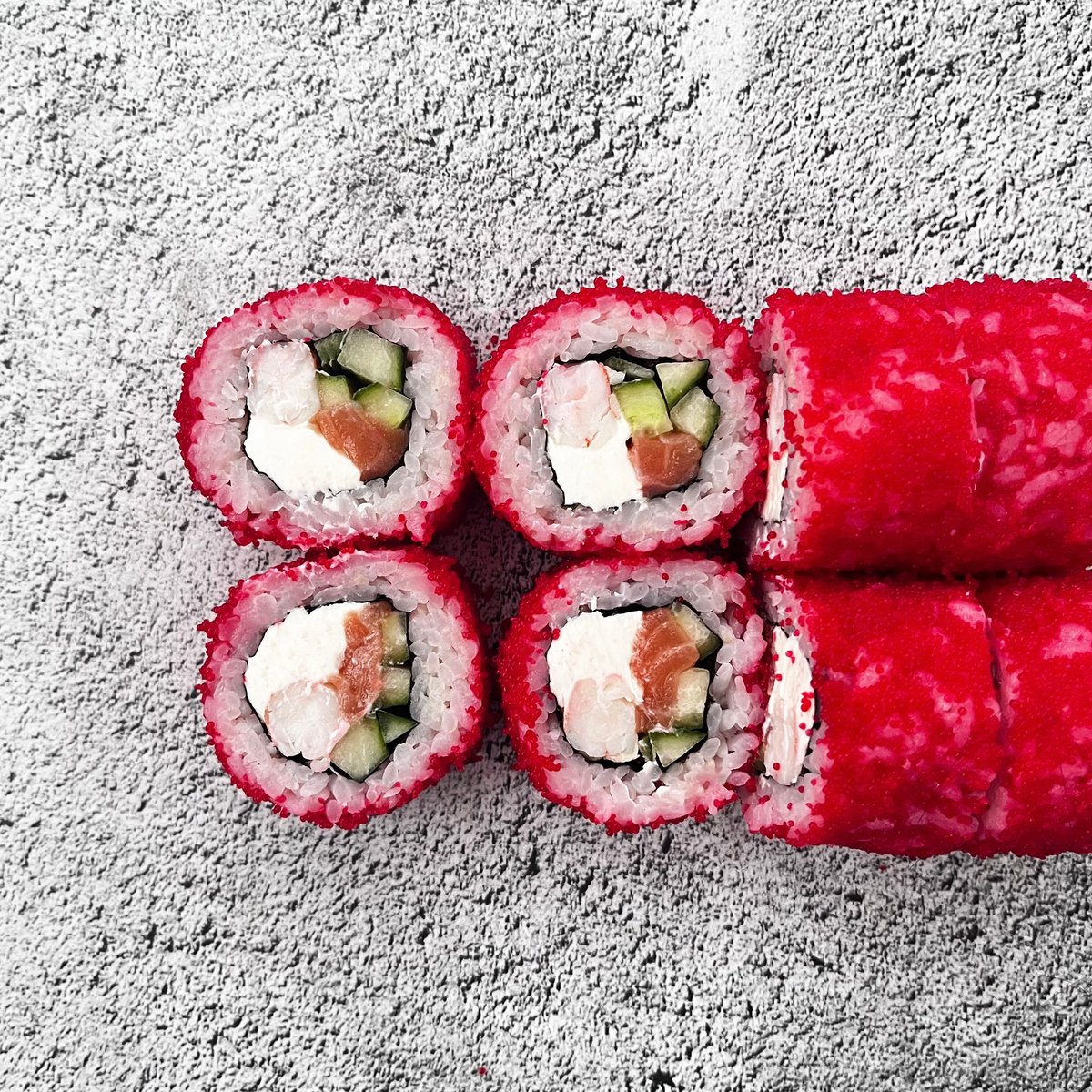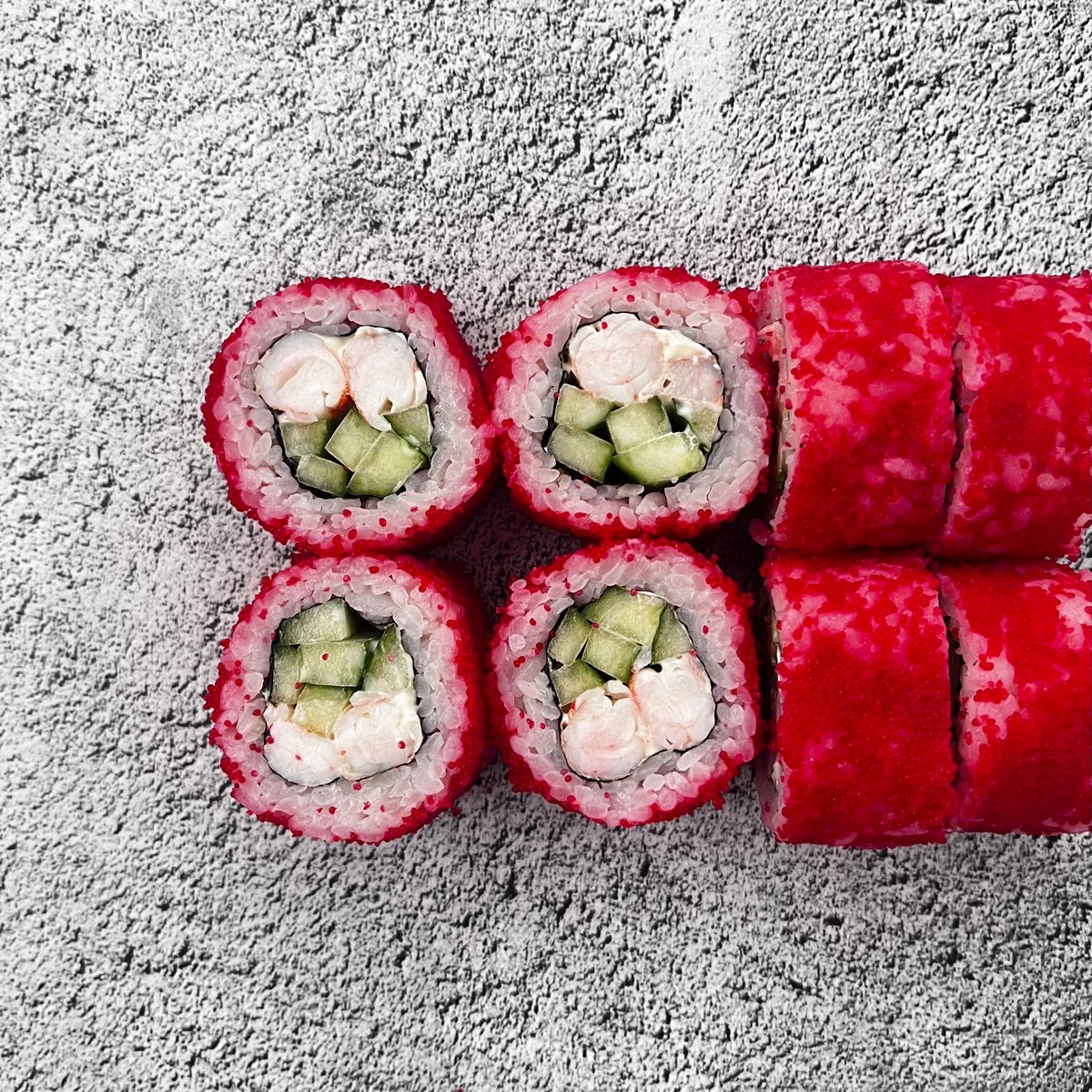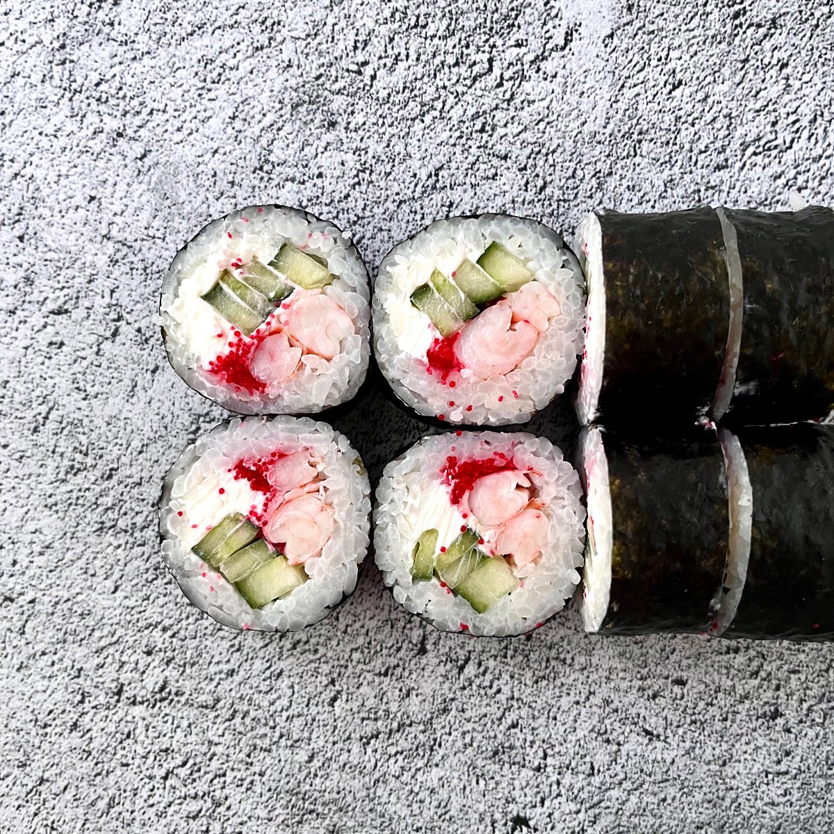 Рис, нори, творожный сыр, огурец, креветка, масаго