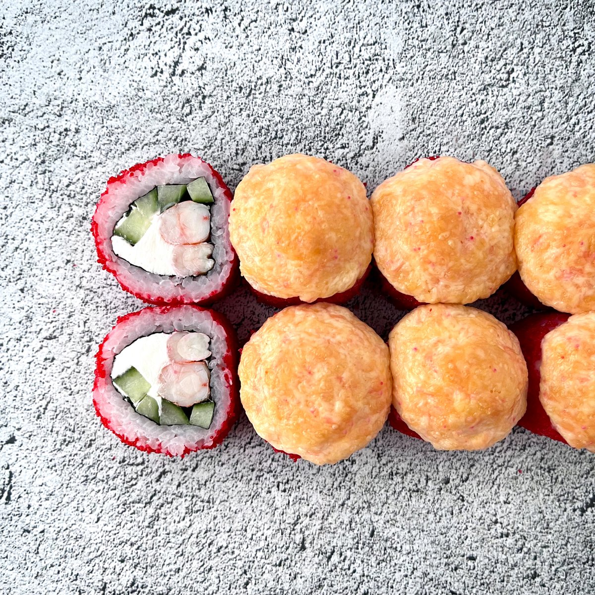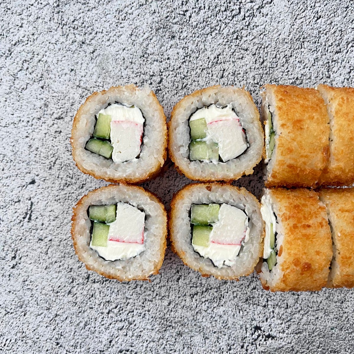 Рис, нори, сыр творожный, снежный краб, огурец, панировка