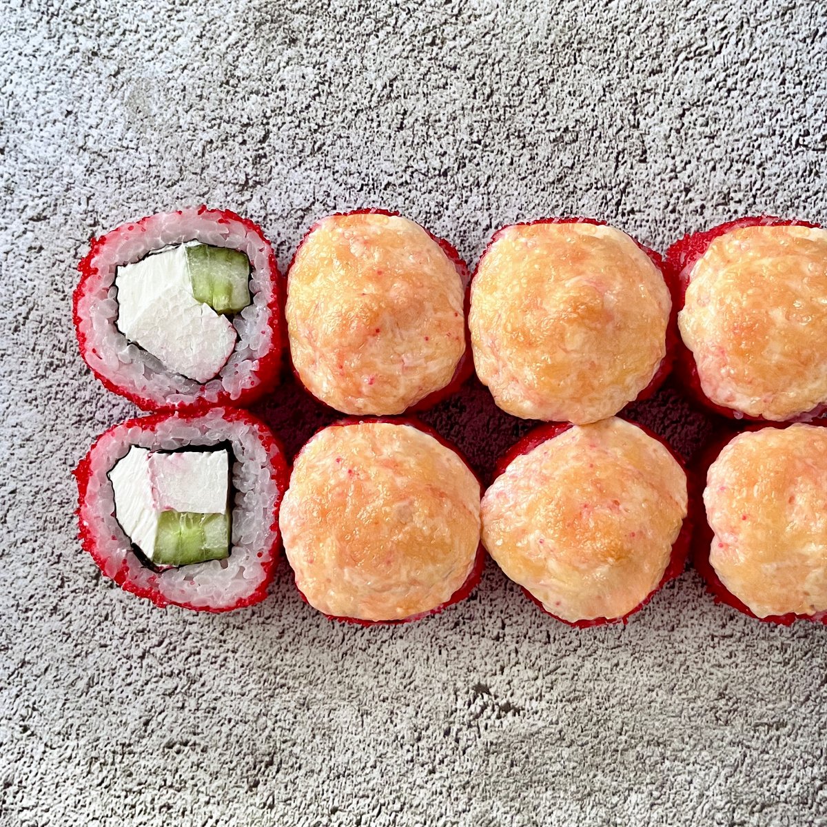 Рис, нори, сыр творожный, огурец, снежный краб, масаго, сырный соус