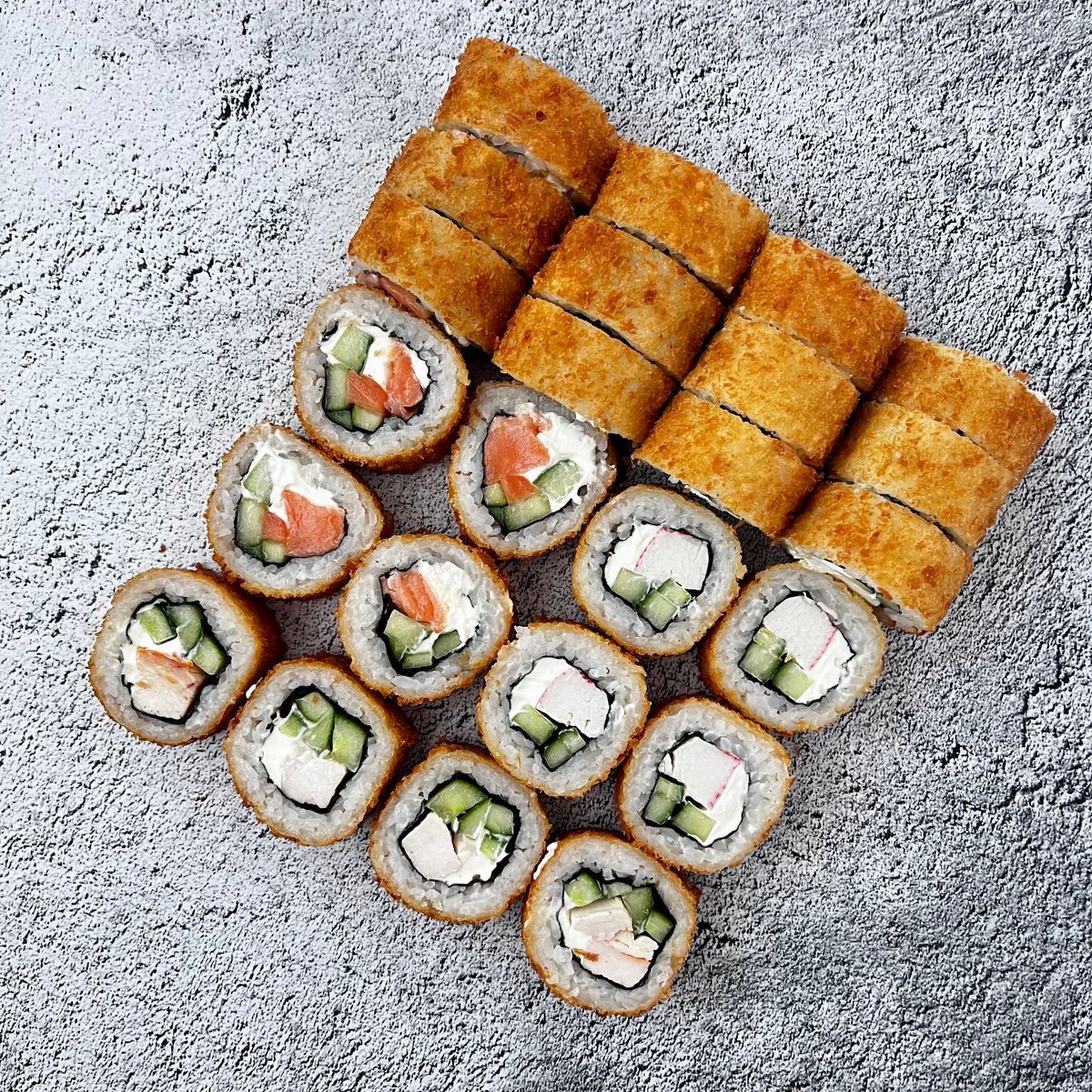 Филадельфия лайт 8 шт, темпура чикен 8 шт, запеченный краб 8 шт