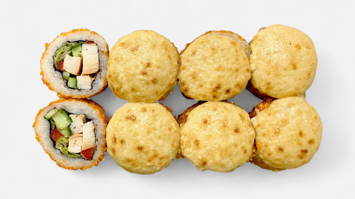 Рис, нори, сыр творожный, огурец, копченая курица, панировка