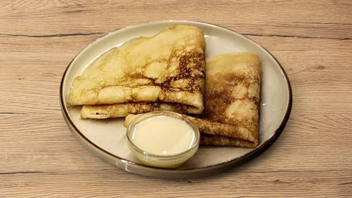 Блин с начинкой из говяжьего языка и шампиньонов с добавлением сметаны