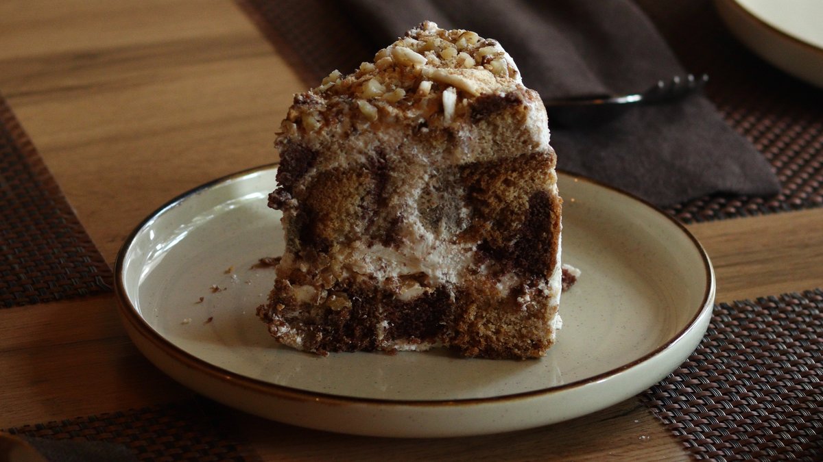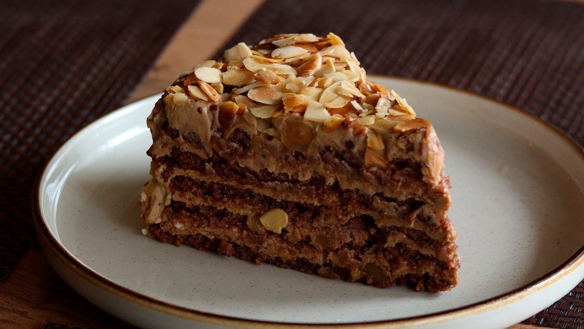 Элегантный десерт с воздушными миндальными коржам и нежным кофейным кремом, вдохновлённый романтичной историей из Баварии.