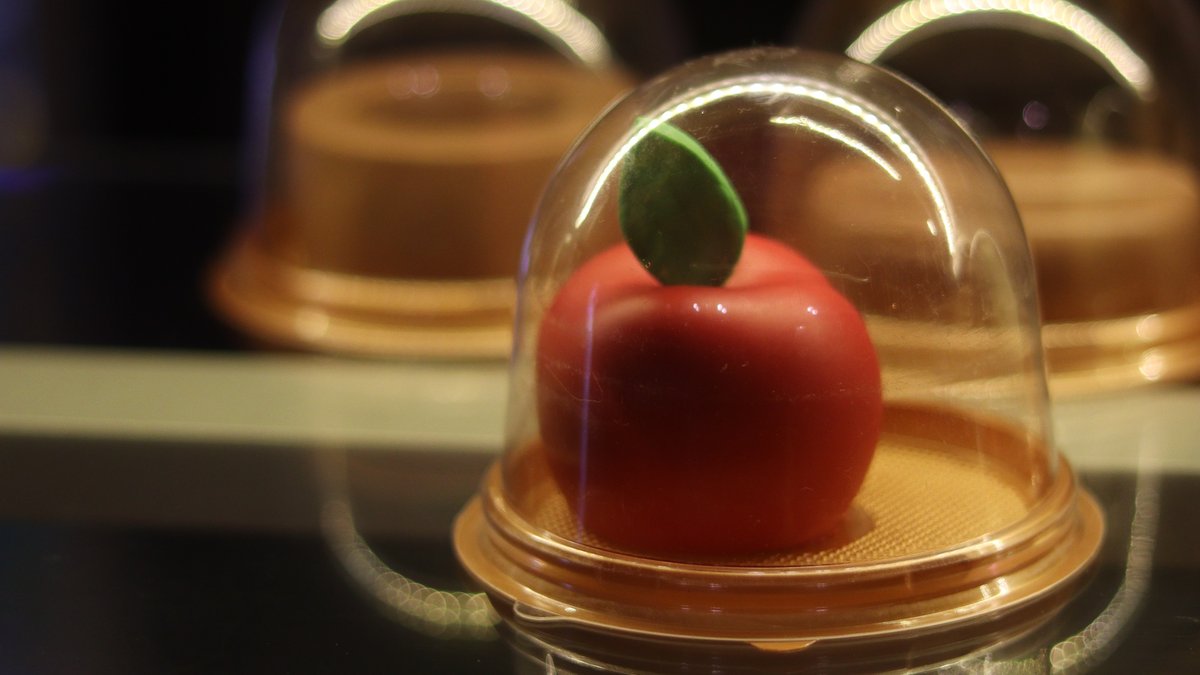 Мусс на основе бельгийского шоколада с прослойкой на вишнёвом ликёре, слегка обожжённый для яркого вкуса.