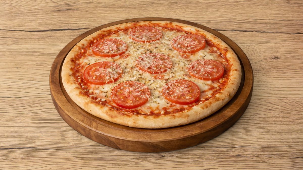Два жареных яйца, сосиски из говядины, тостовый хлеб, салат из свежих овощей и нежная моцарелла для идеального начала дня