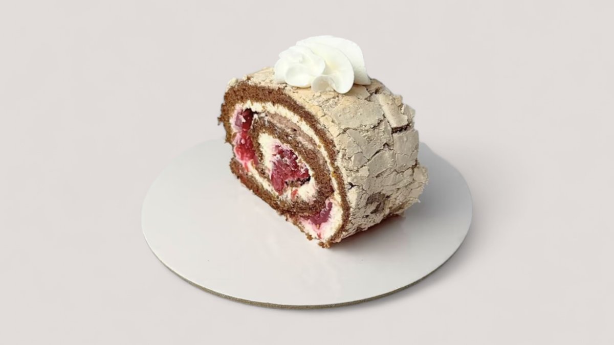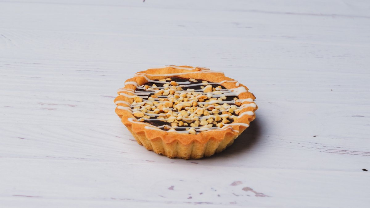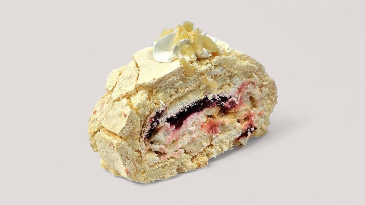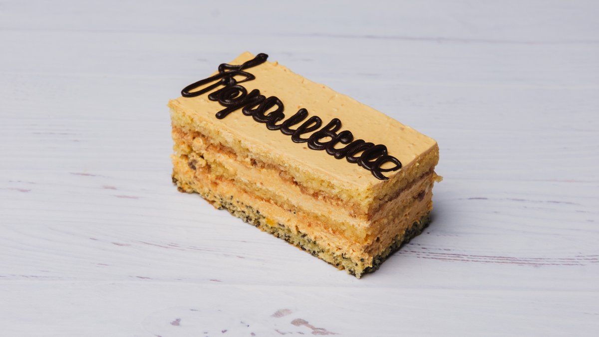 Песочно-шоколадная основа с вишнёвым конфитюром.