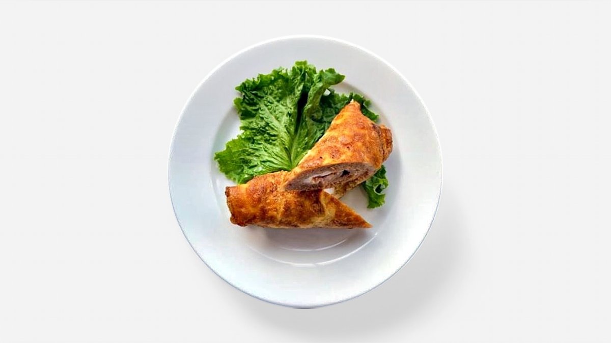 Бризоль мясная с помидорами, каша гречневая, салат из моркови со свежим огурцом, пампушка.