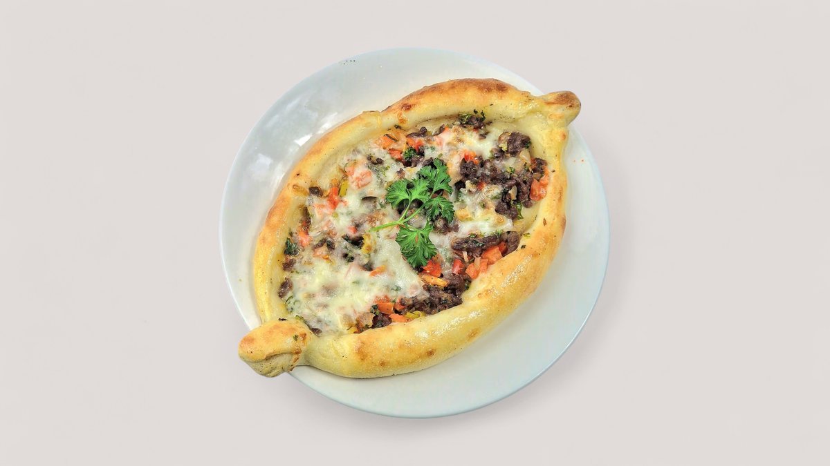Тесто для пицц,говядина отварная, соус тар-тар, помидоры, сыр, зелень(укроп). 550г