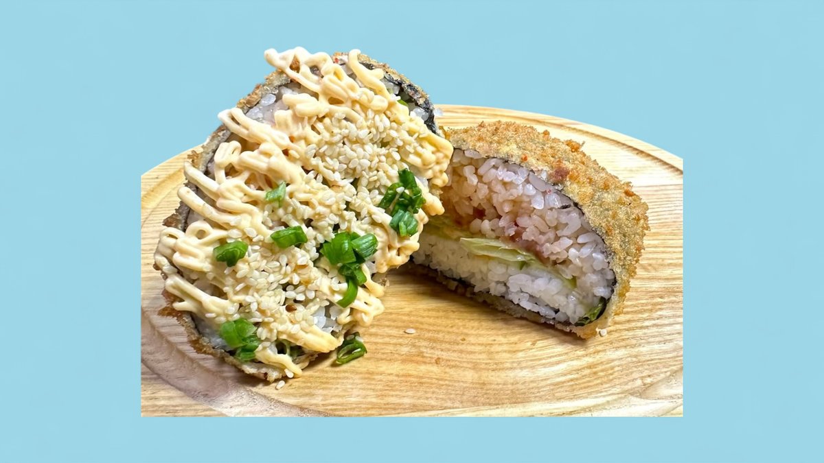 нори,рис,курица копченная,помидор,майонез,шрирача,зеленый лук, кунжут