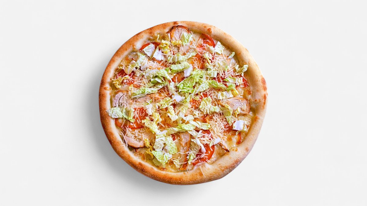 Шампиньоны, филе цыпленка, томаты, маслины, моцарелла, томатный фирменный соус