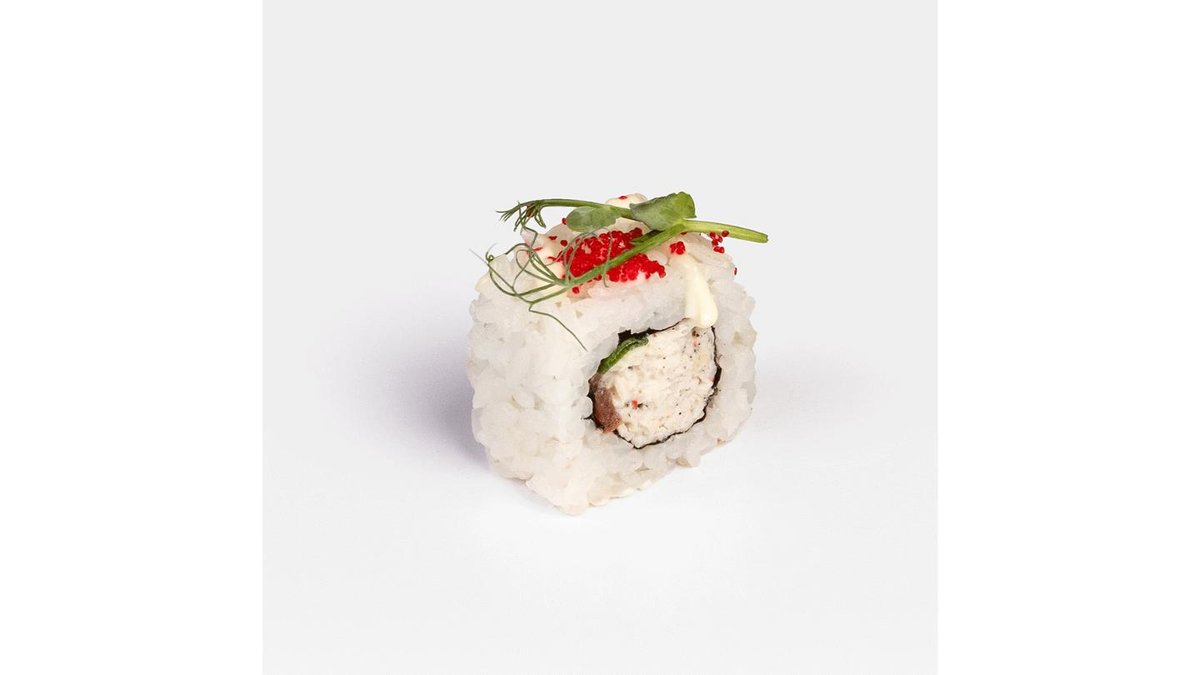 245 г.Снежный краб, сливочный сыр, огурец, масаго, нори.