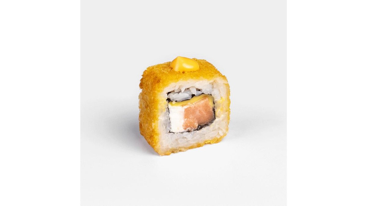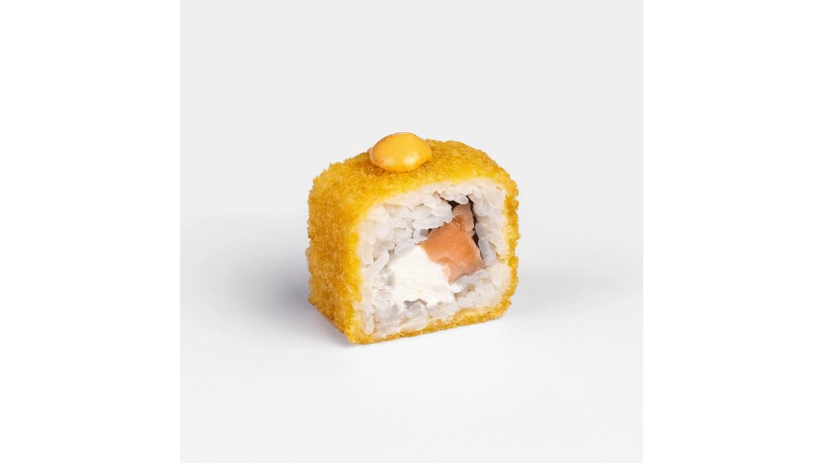 355 г.Лосось, два сыра, темпура, сухари панко, нори.