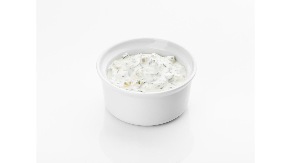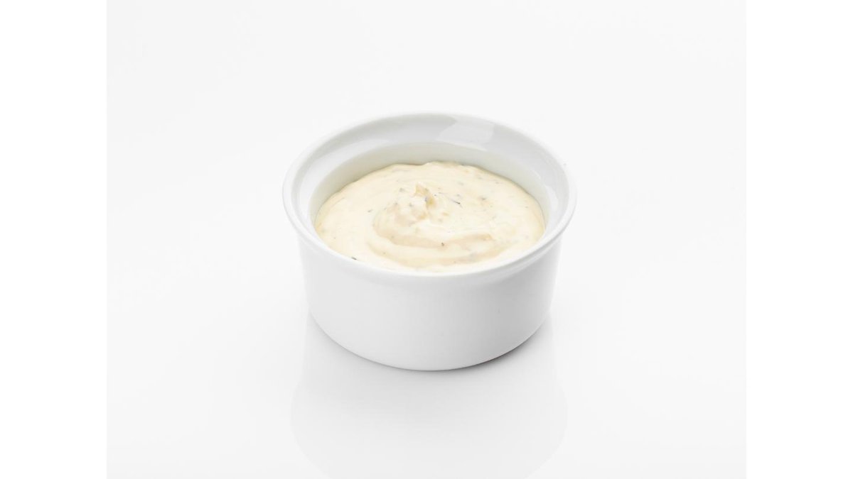 35 г. Соус на основе майонеза, сливок, чеснока, корнишонов и зелени.