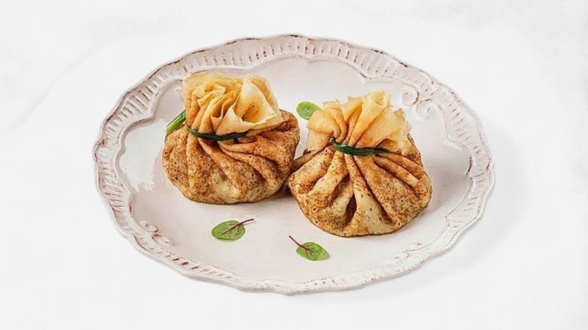 Цезарь с кониной и мини-баурсаками с посыпкой из курта