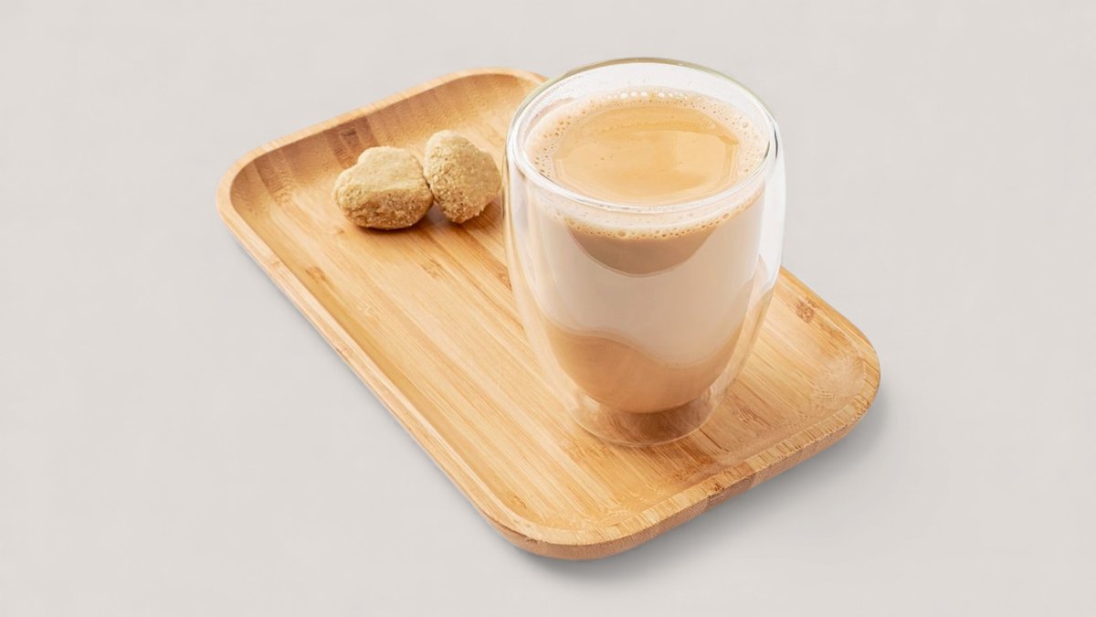 Сливки, молоко, корица, анис, гвоздика, сахарный сироп, имбирь, мед. На основе черного чая