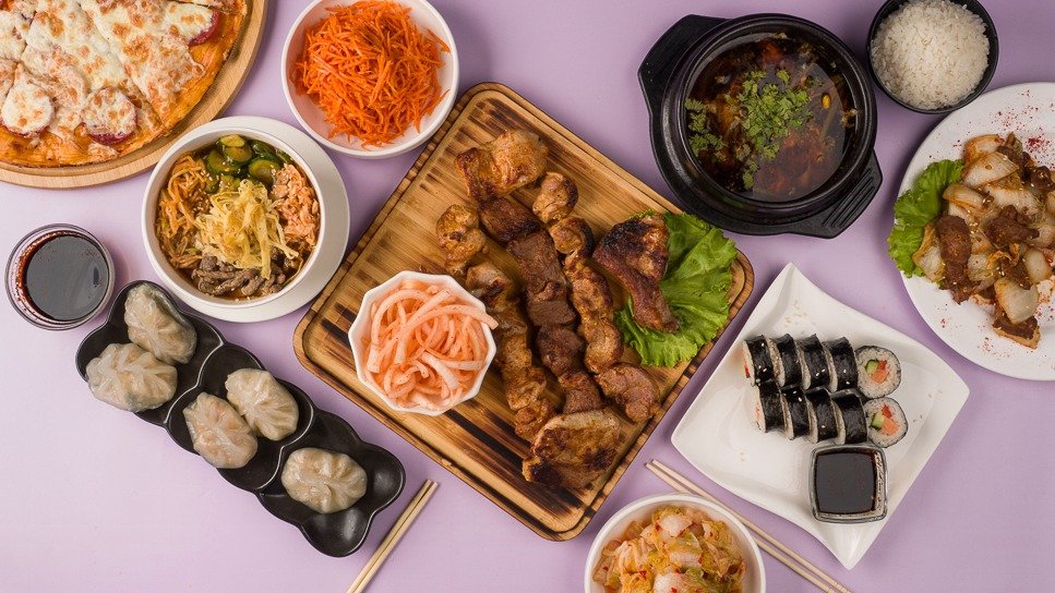 Үй тағамдары, корей, шығыс және еуропа асханасы. Түрлі кәуәптар, пицца және балалар мәзірі бар 🍢 🫕