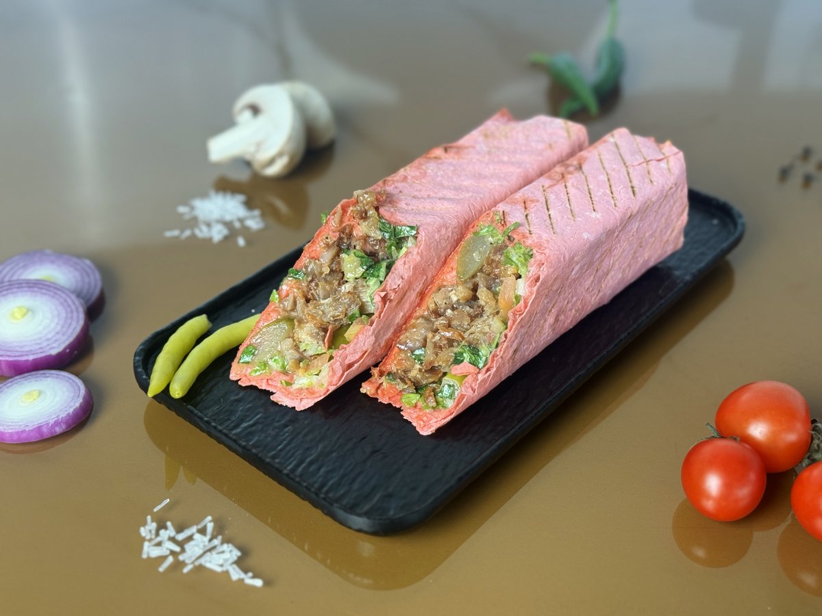 Қызғылт лаваш, орамжапырақ, сәбіз, тұздалған қияр, қызанақ, фирмалық соус (майонез бен кетчупсыз)