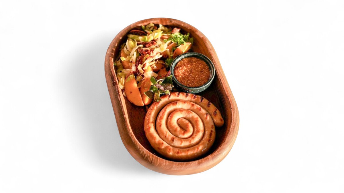 глазунья,куриные колбаски,фасоль,помидоры с сыром сулугуни