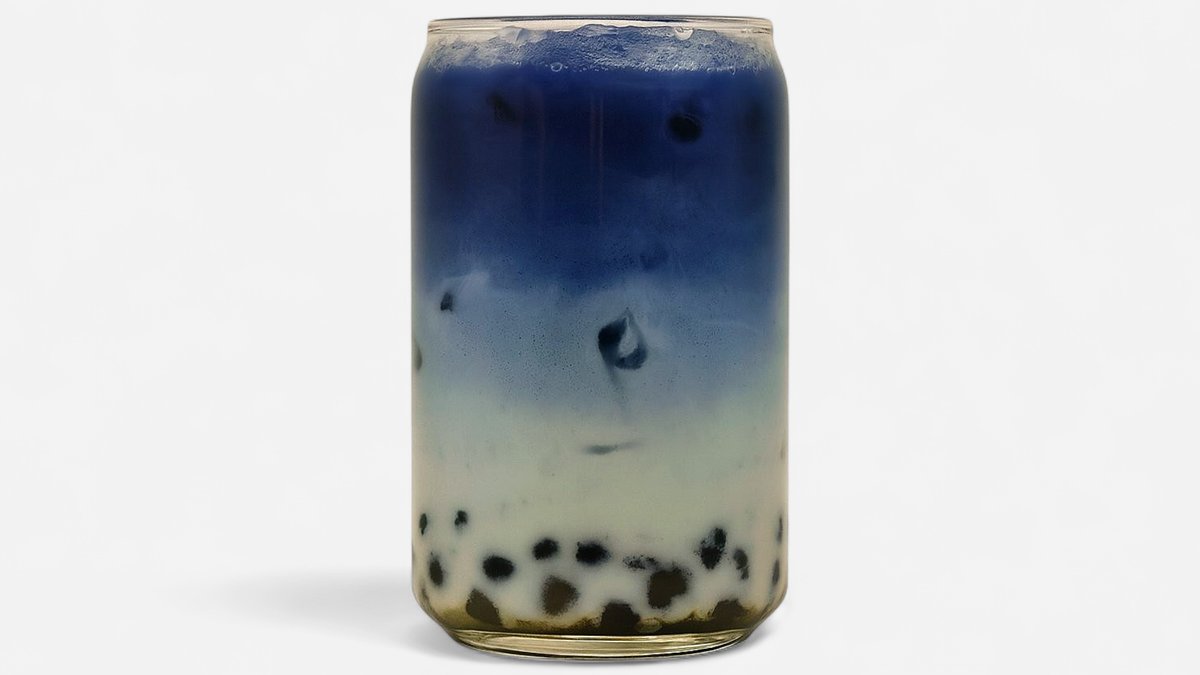 Нежный бабл ти на основе голубой матчи с тапиокой .
