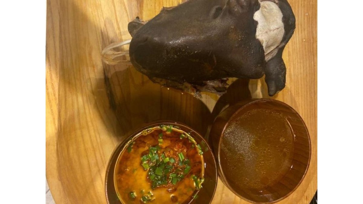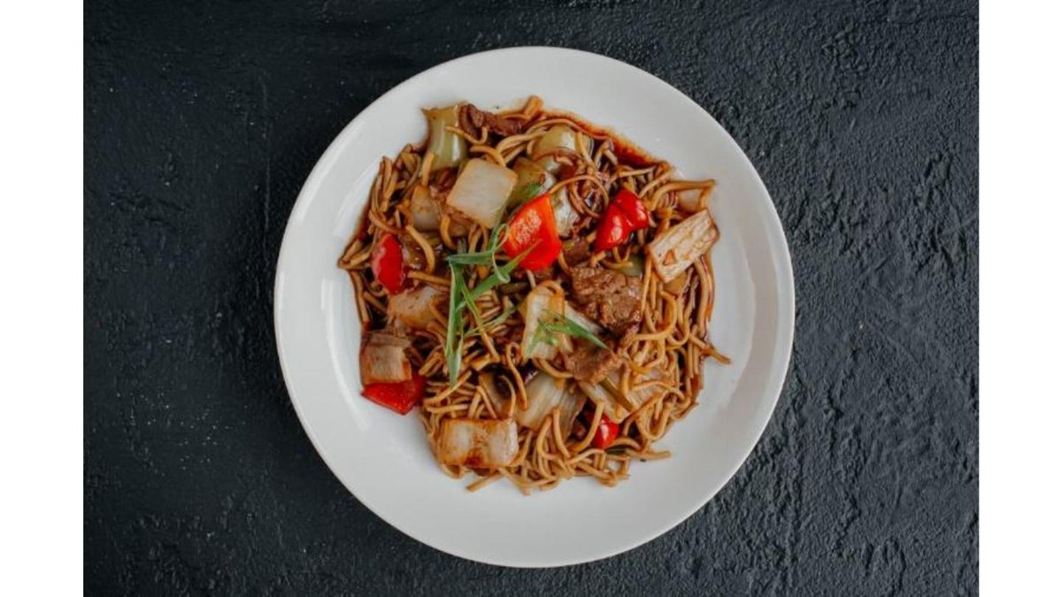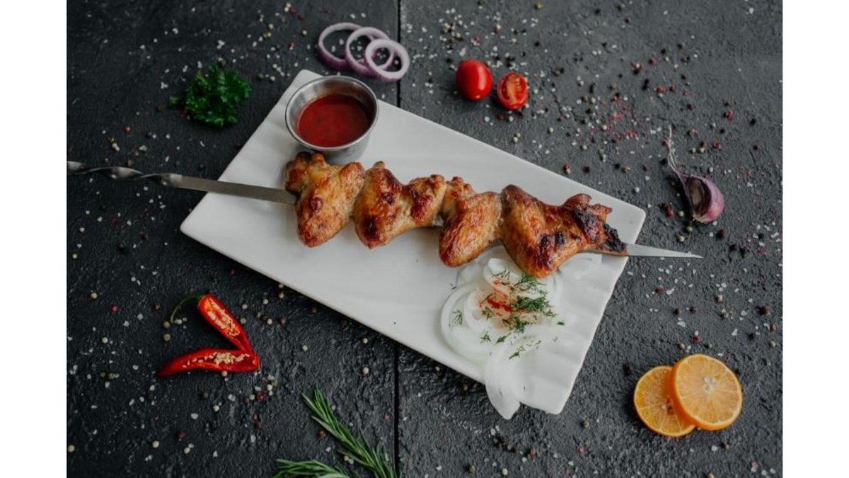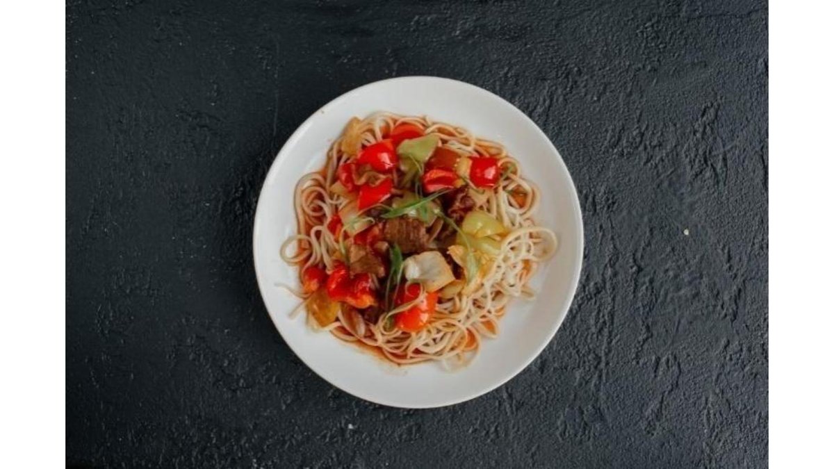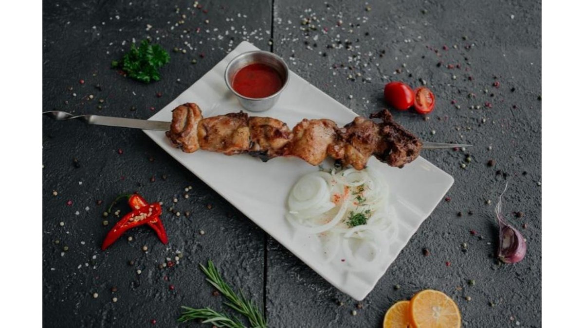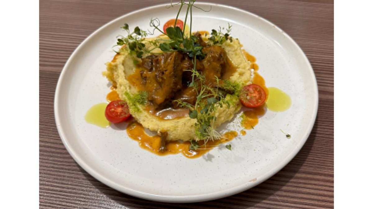 Говядина с хрустящими баклажанами и салат с соусом Мухаммара