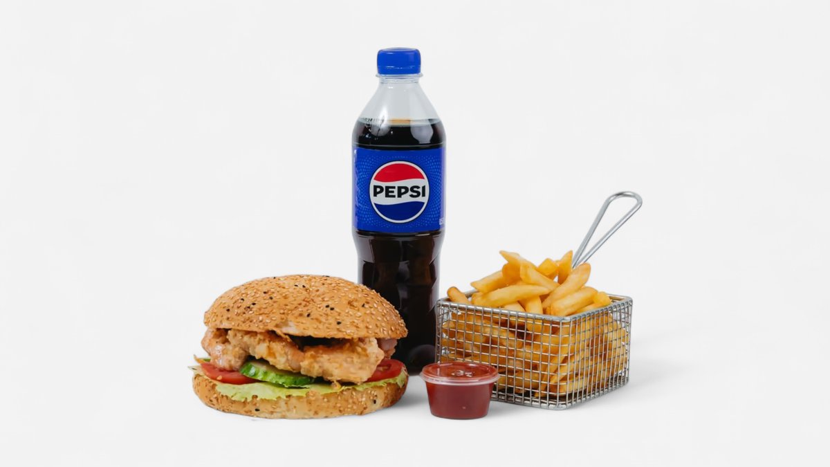 Chicken Burger + картофель фри (маленькая порция) + фирменный соус + Pepsi 500 мл