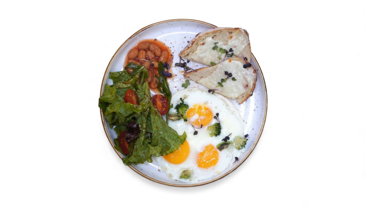 Авокадо және брокколи қосылған қуырылған жұмыртқа