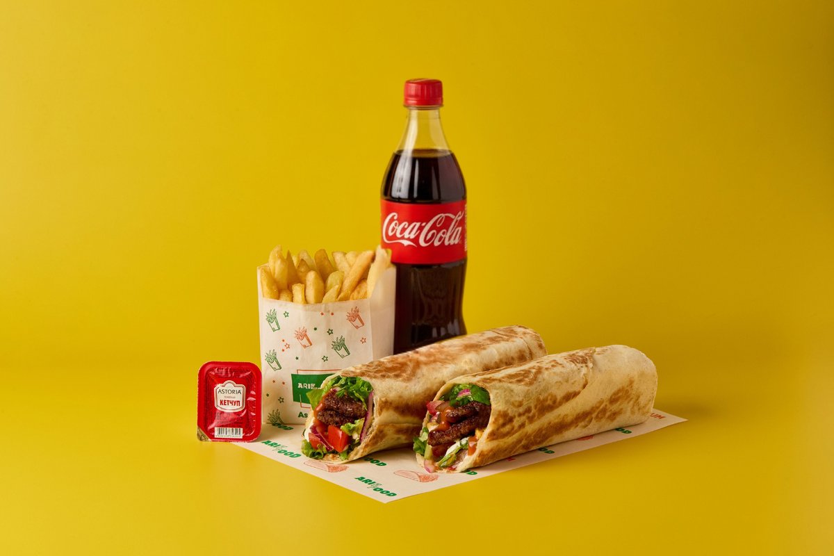 ДУРУМ ГОВЯЖИЙ С Х2 МЯСОМ КОМБО С АЙРАНОМ