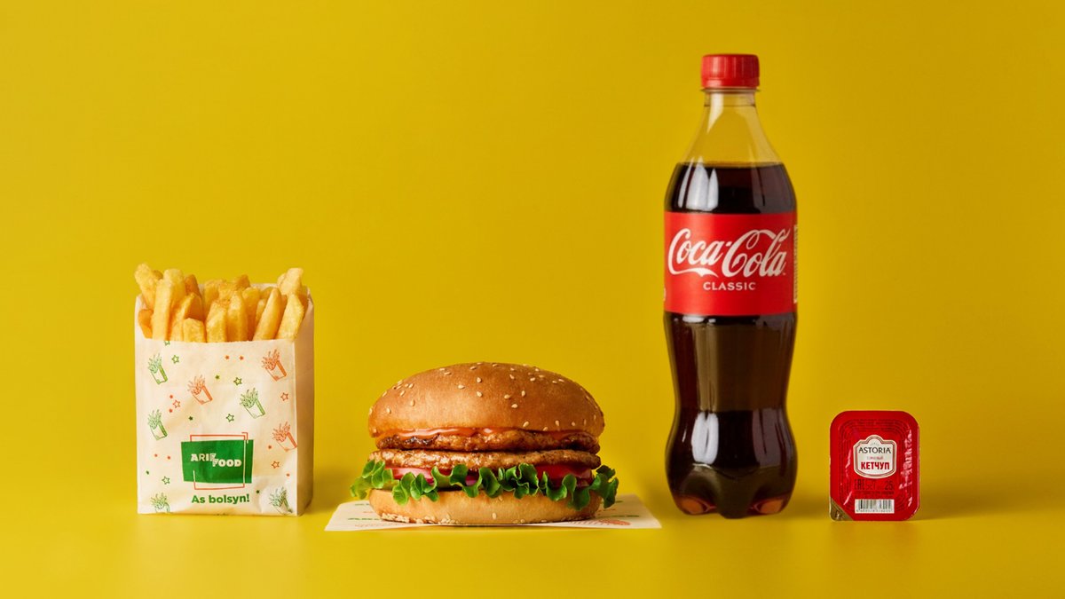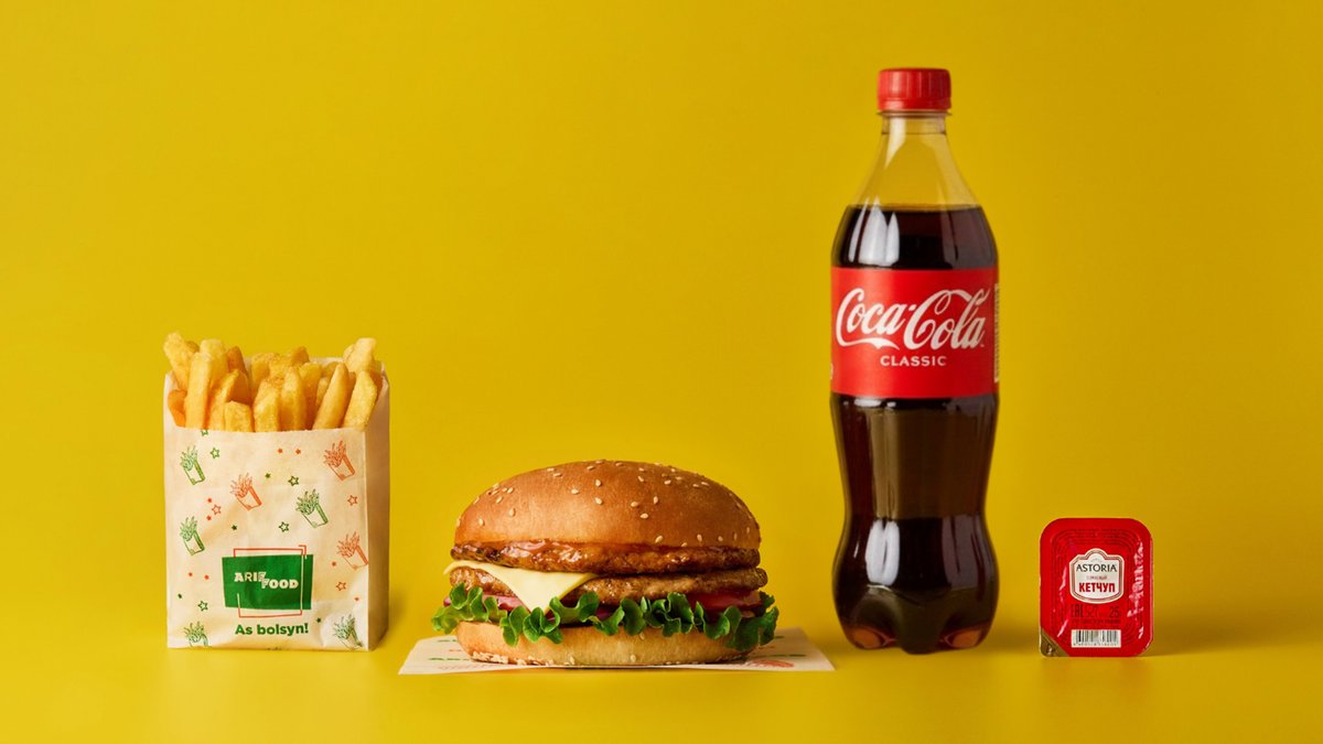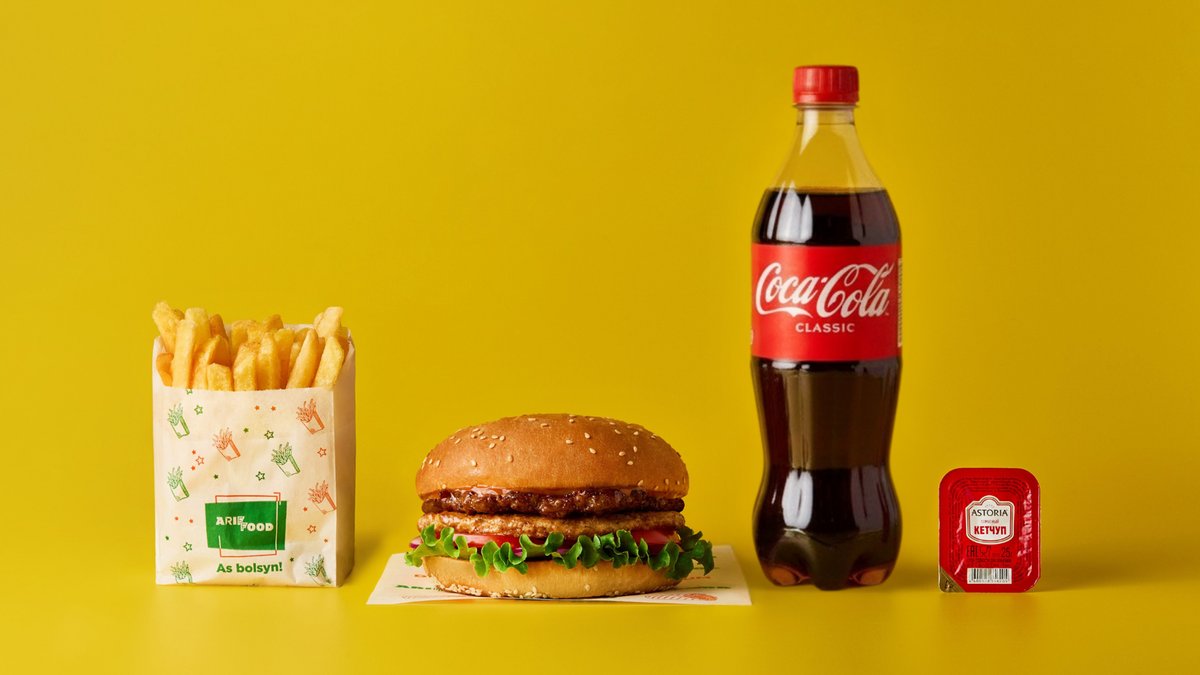 Гамбургер говяжий двойной, фри, напиток 0,5 на выбор, соус на выбор