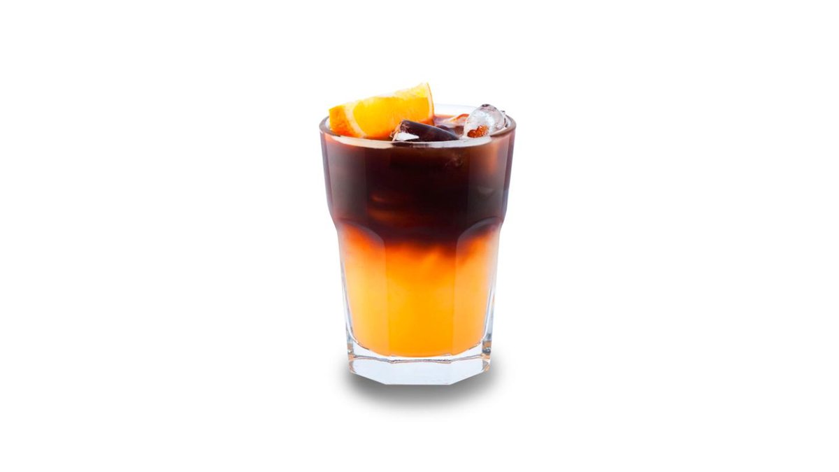 коктейль на основе эспрессо, апельсинового сока, карамели и льда