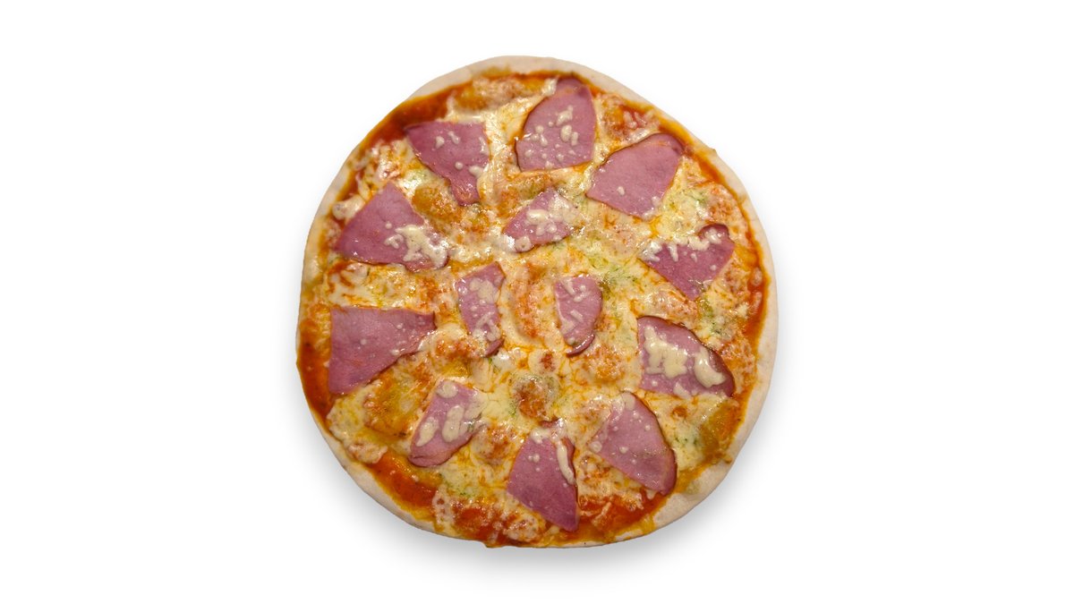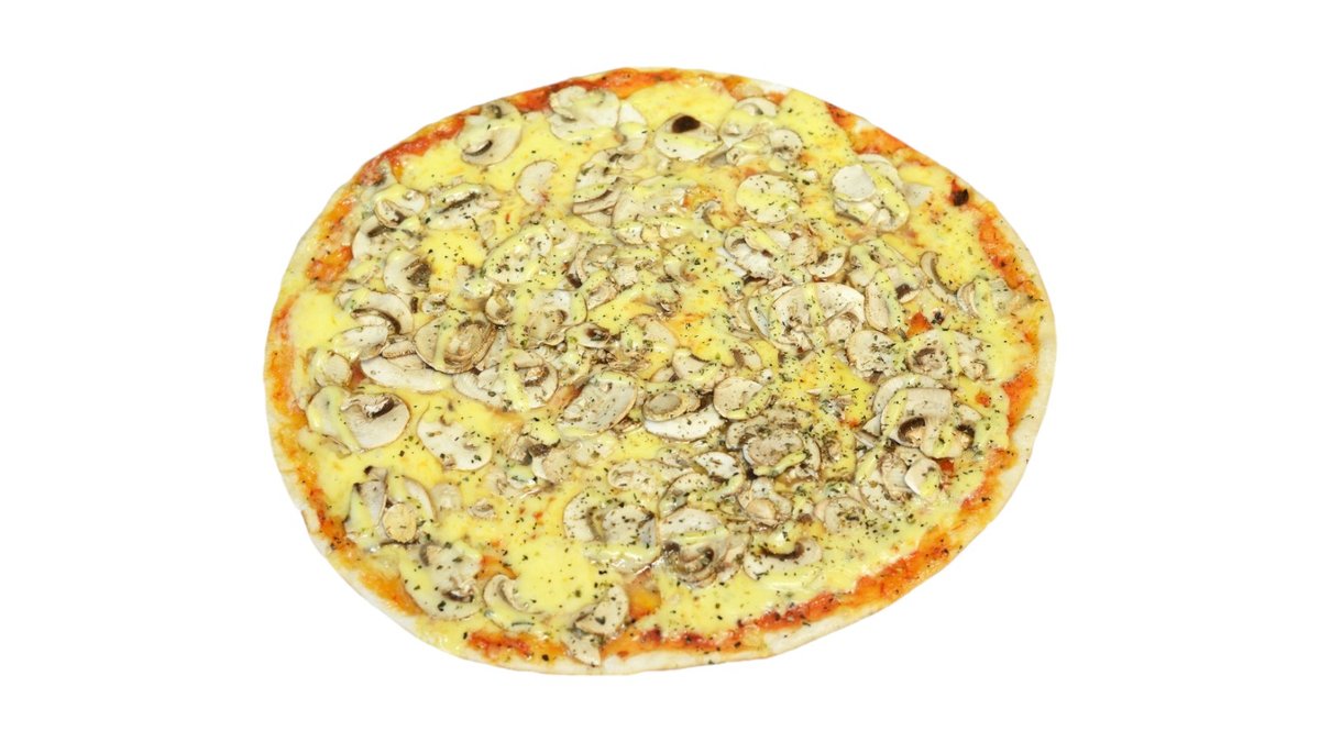 Pomidorų padažas, mocarela sūris, kumpis, pievagrybiai, česnakinis bazilikų aliejus.